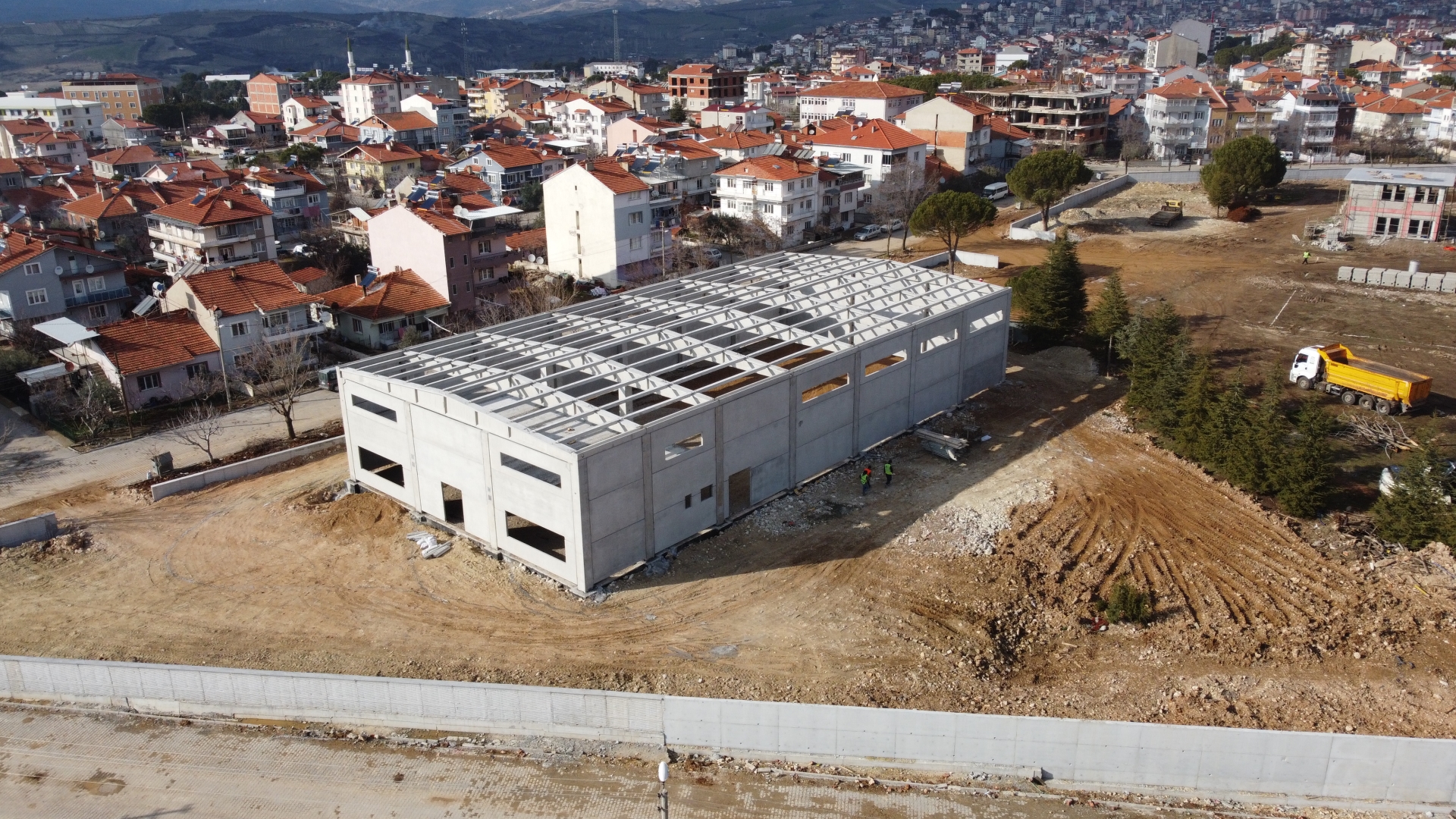 1000 metrekare büyüklüğündeki spor salonunun kaba inşaatı tamamlanırken, soyuna odası ve kafetaryanında kaba inşaatının hafta içerisinde tamamlanması hedefleniyor.