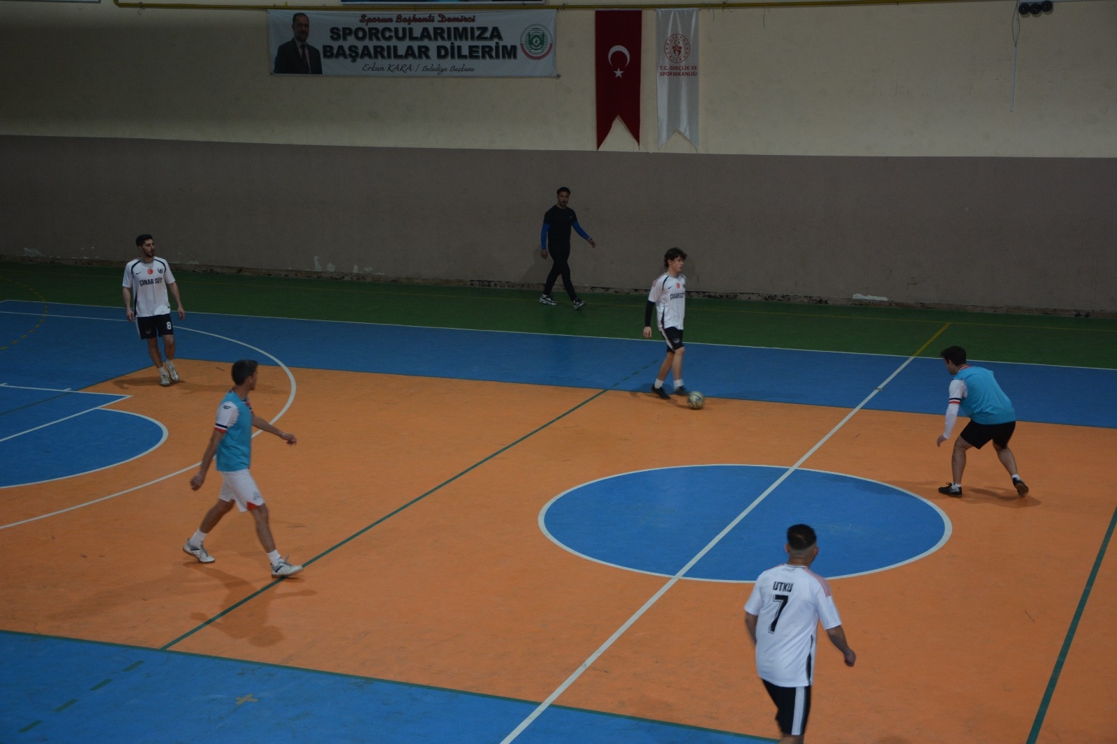 Belediye Başkanımız Erkan Kara’da, Gençlik Hizmetleri ve Spor İlçe Müdürü Bilal Yılmaz ile birlikte futsal turnuvasının yapıldığı Turgut Özal Spor salonunda gelerek turnuvaya katılan takımlar ile selamlaştı.