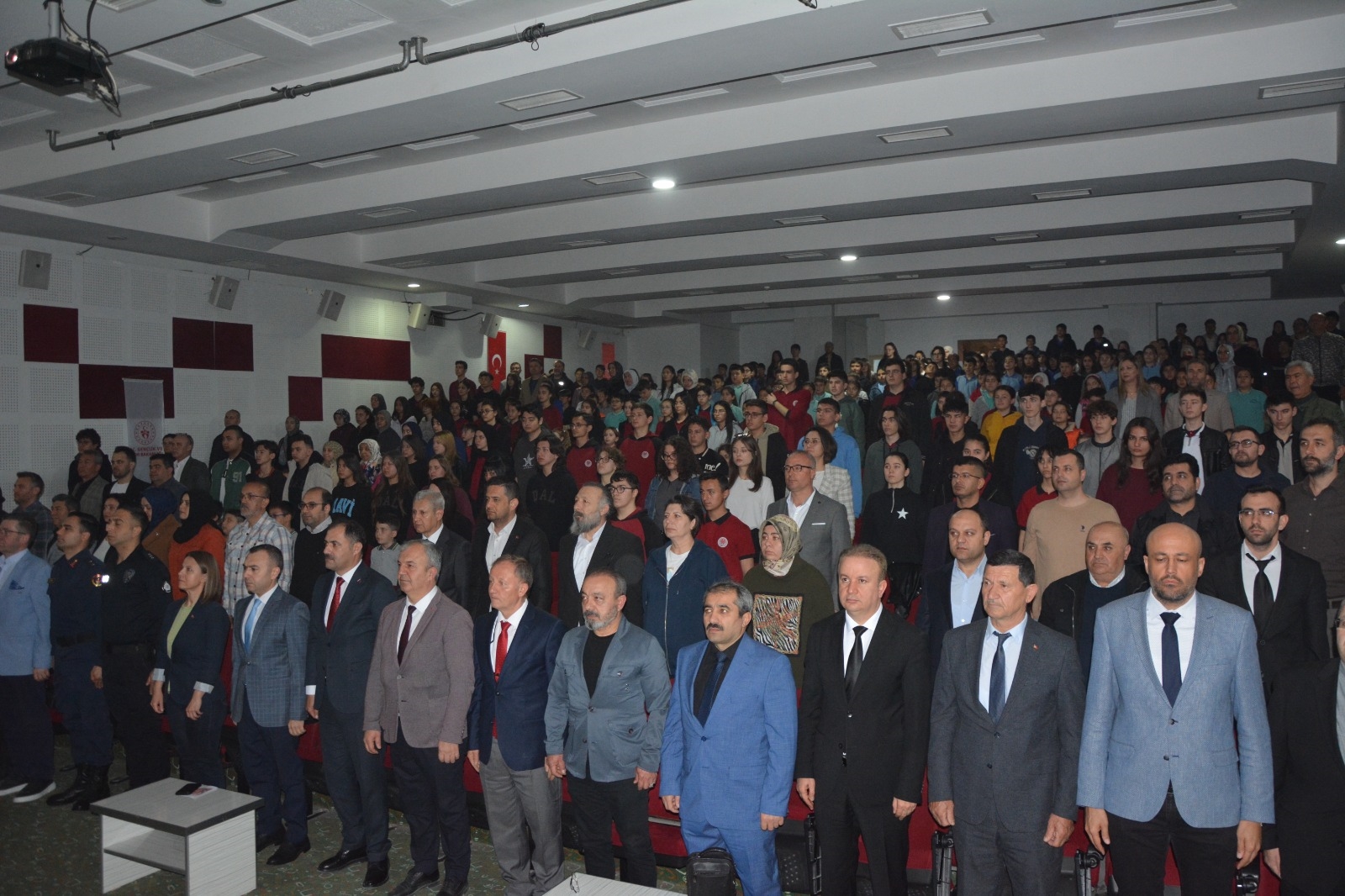 Saygı duruşu ve İstiklal marşının okunmasının ardından okul Müdürü Mehmet Dağlar tarafından günün anlam ve önemini belirten konuşma yapıldı.