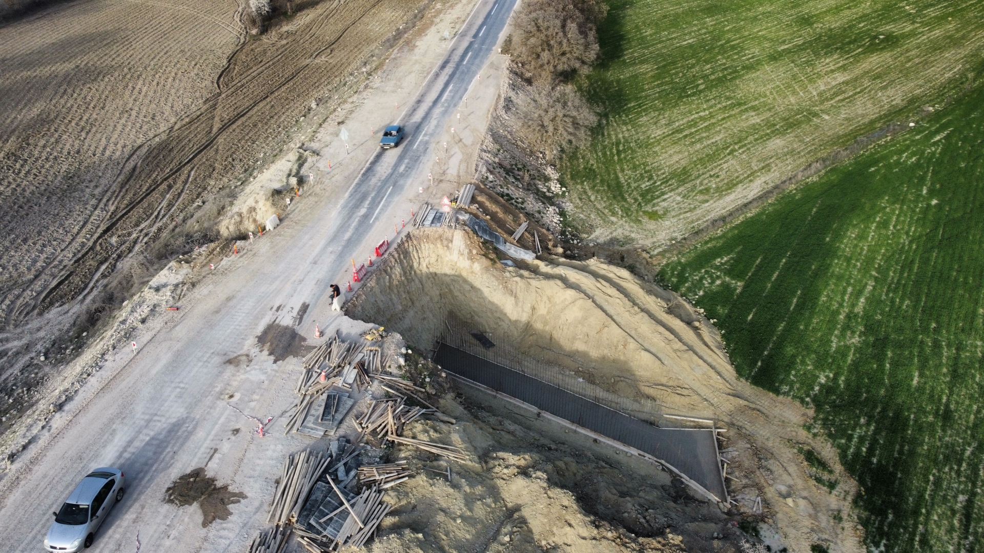 Yolu yapan ME-YU & Zi İnşaat firması yol yapım çalışmaları kapsamında Yeşildere köprüsü ile Tekeler rampası arasında menfez yapımına başladı.