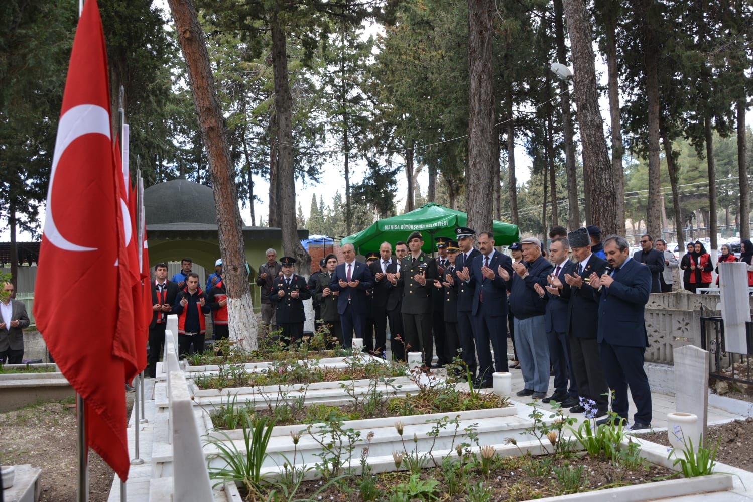 Anma programının ardından Kaymakamımız Yavuz Arslan, Belediye Başkanımız Erkan Kara, Garnizon Komutanı Mly. Binbaşı Hüseyin Cihan Korkmaz ve ilçe protokolü Demirci Kabristanlığında Şehit ve gazilerimizin mezarlarını ziyaret ederek dua ettiler.