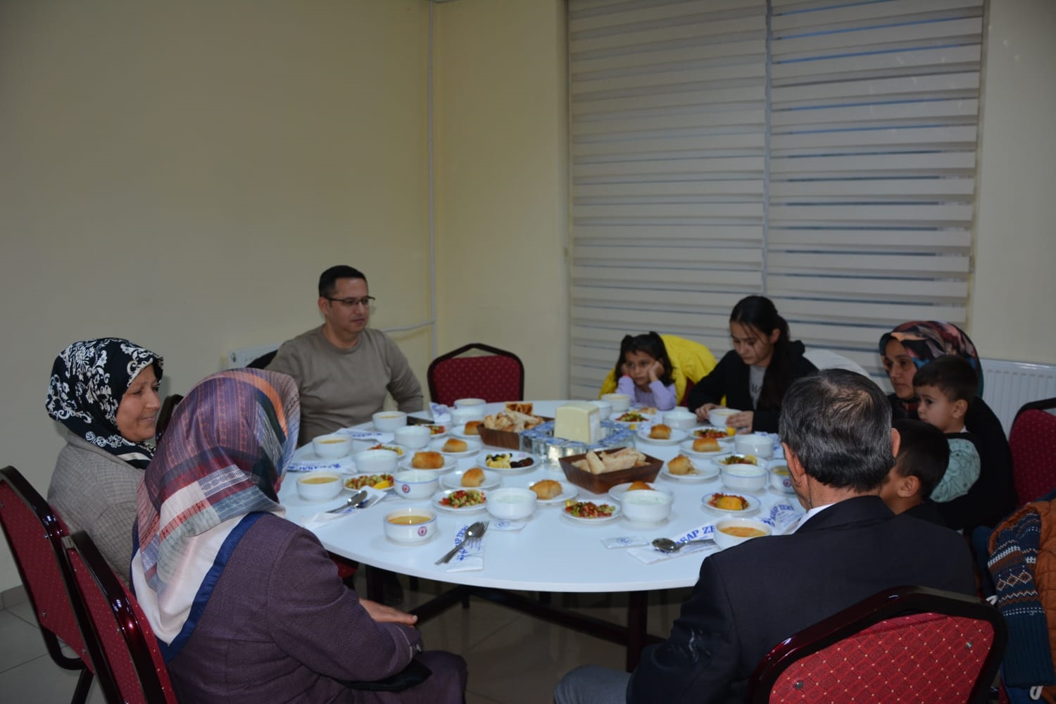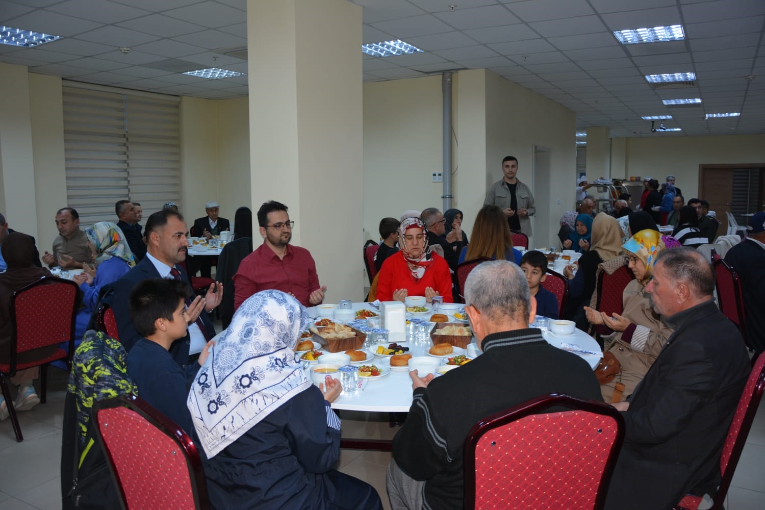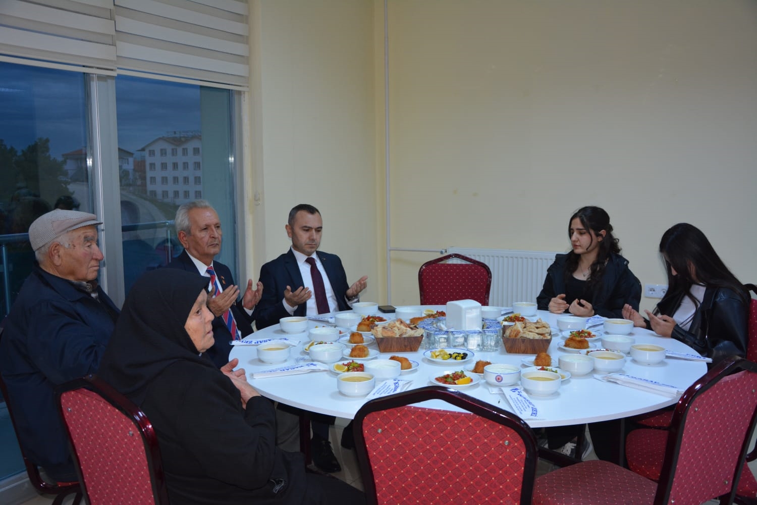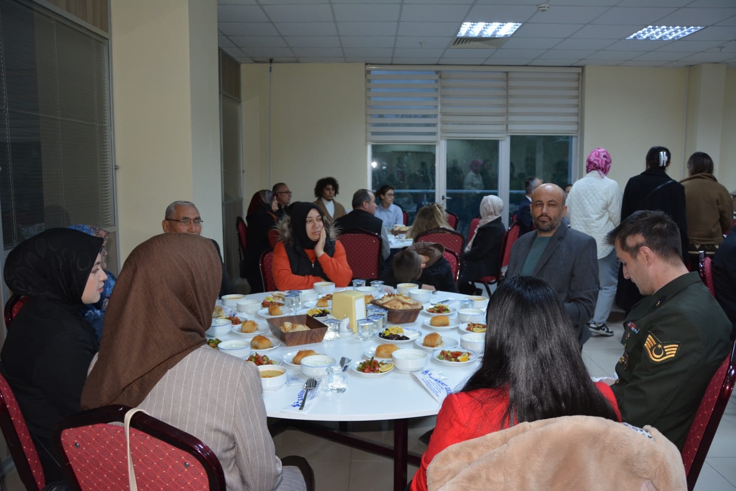 Kaymakamımız Yavuz Arslan ve Başkanımız Erkan Kara, iftar yemeği programına katılan Şehit Aileleri, Gaziler ve Gazi ailelerini masalarında ziyaret ettiler.