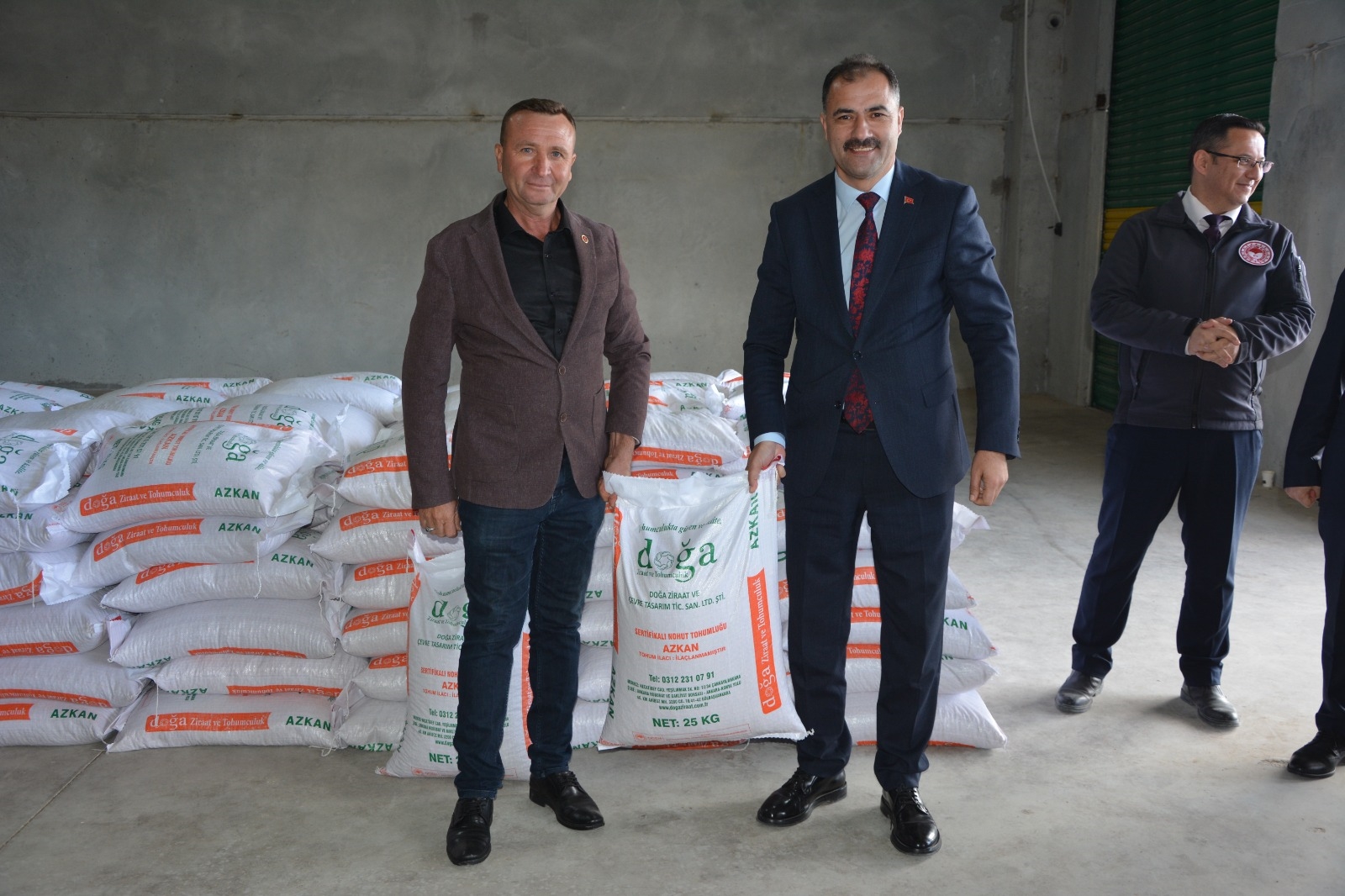 Tarım Ürünleri Merkezine getirilen nohut tohumları Kaymakamımız Yavuz Arslan, Belediye Başkanımız Erkan Kara ve İlçe Tarım ve Orman Müdürü Faruk Şenyurt tarafından hak sahibi olan çiftçilere dağıtımı yapıldı.