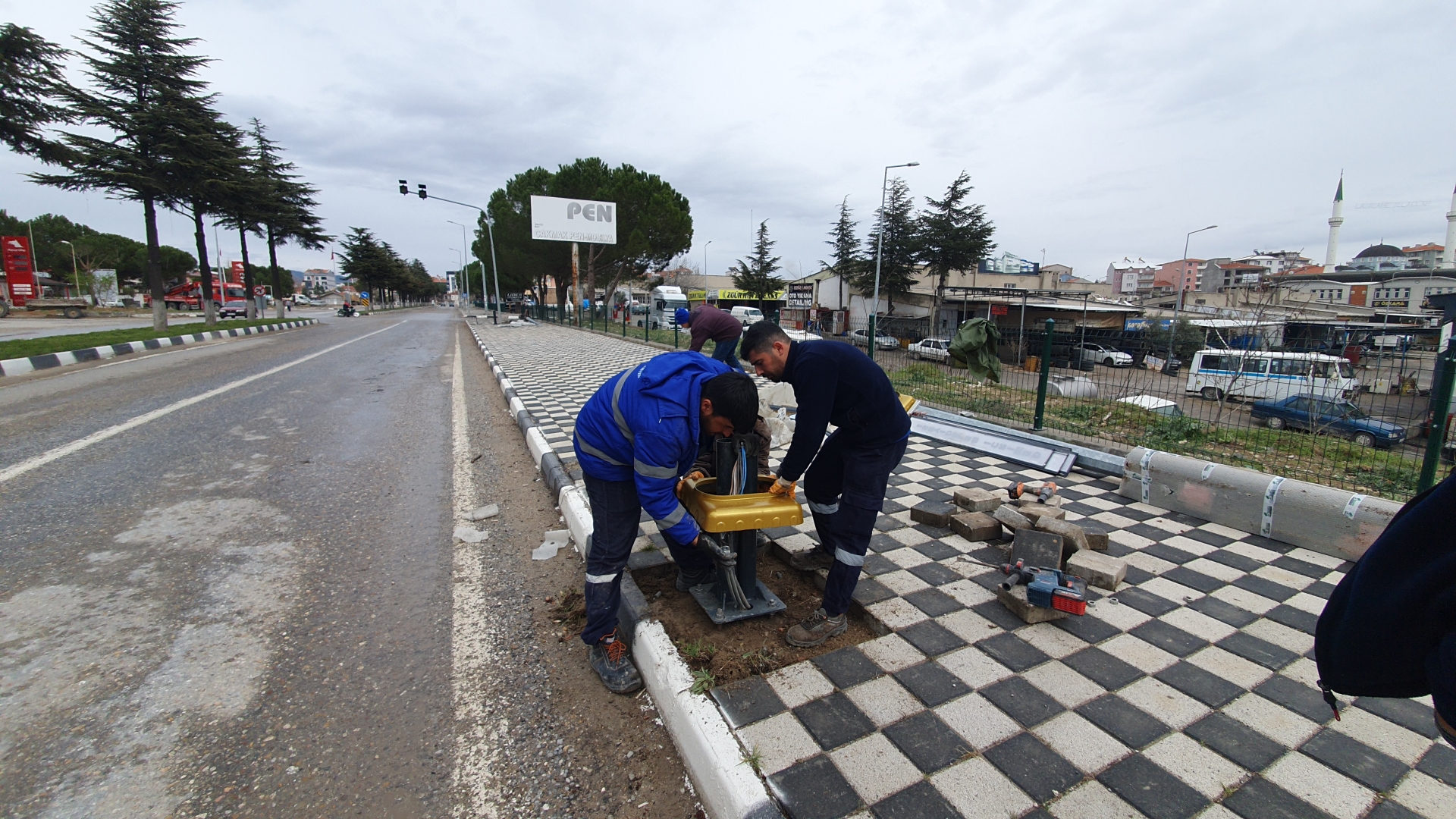 Yeni aydınlatma direklerinin montajı ve ağaç ışıklandırma lambalarının montajının tamamlanmasının ardından enerji verilerek şehrin girişini yeni bir aydınlatmayla buluşacak.