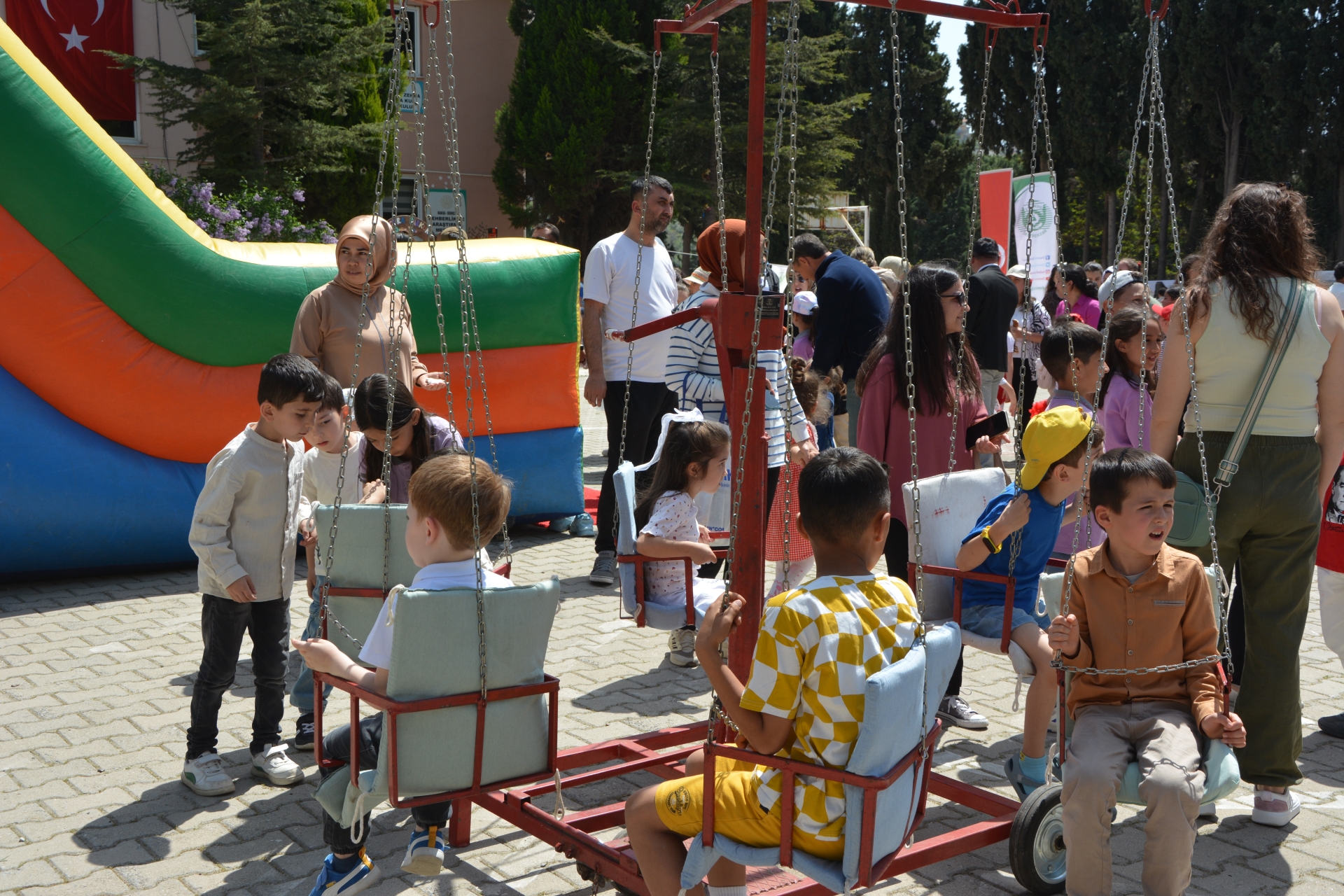 Çocuklar şişme kaydırak, akıl zeka oyunları, müzikli oyuncaklarla doyasıya eğlenen çocuklar, palyaço gösterileri ile de unutulmaz bir bayram yaşadılar.