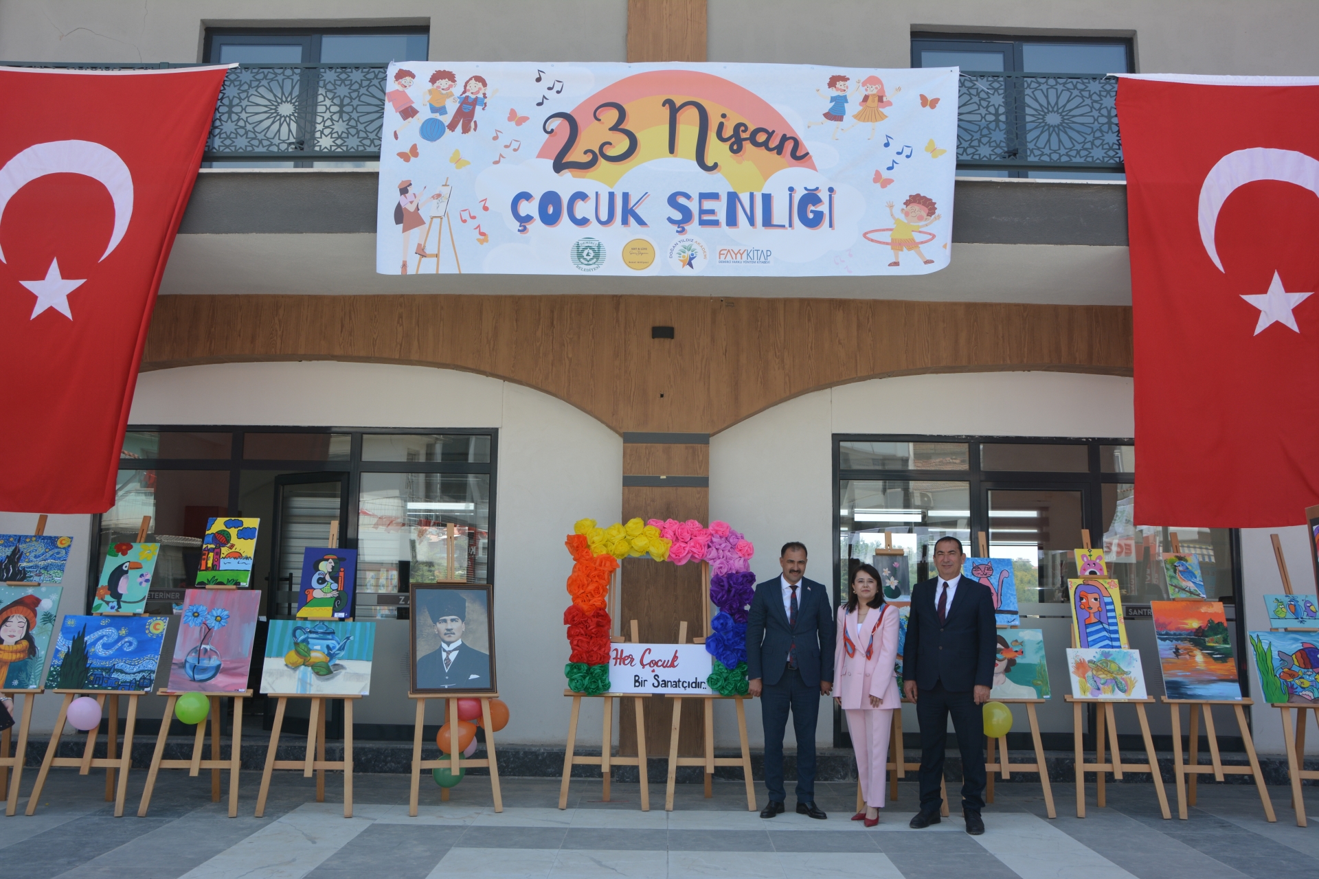 Demirci Belediyesi’nin destekleri, Art Life Sanat Atölyesi ve Doğan Yıldız Akademi ve Demirci Farklı Yöntem Kitabevi (FayyKitap) işbirliği ile düzenlenen çocuk şenliğinde çocukların yaptığı resimler sergilendi.