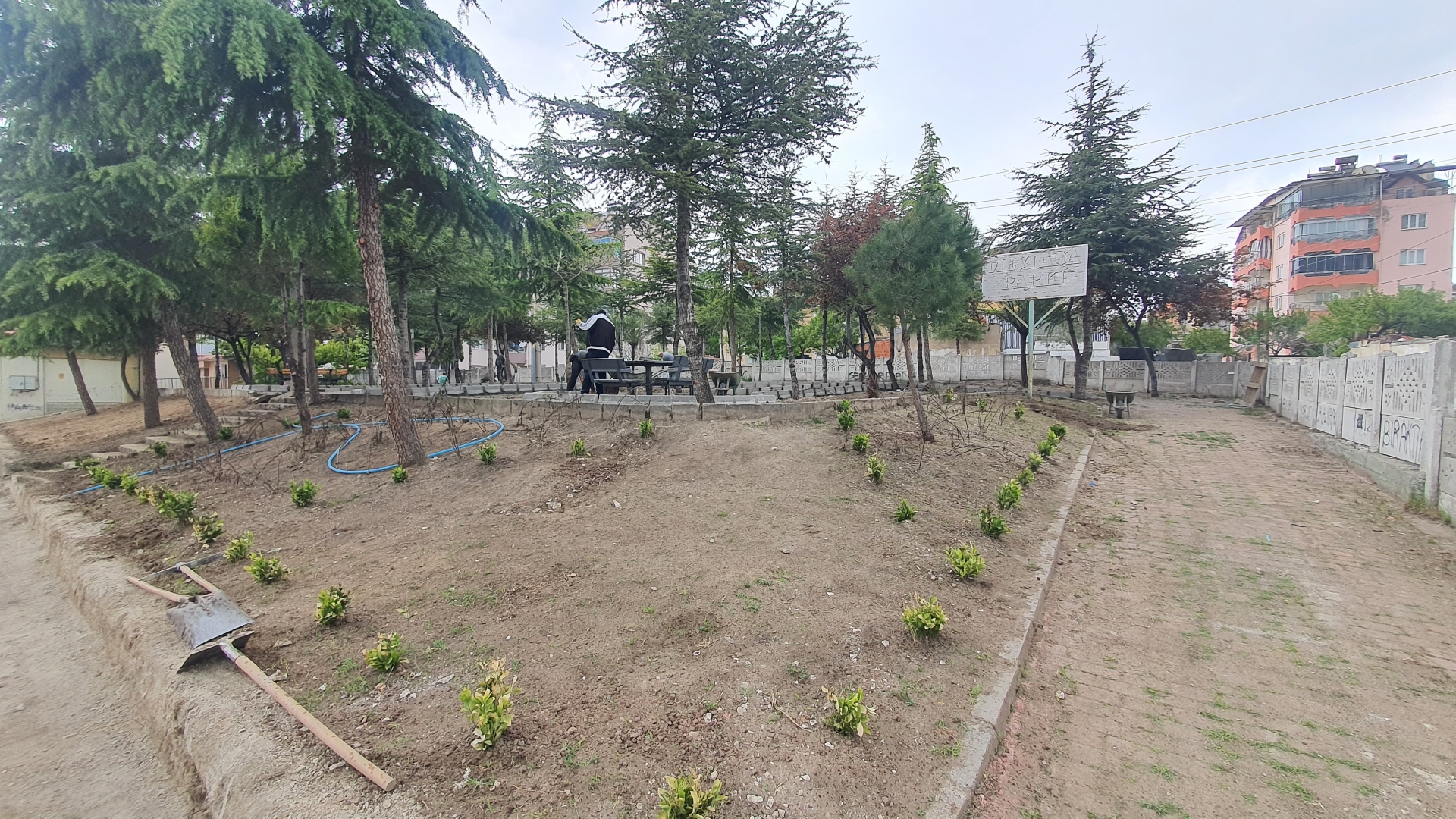 Parkın üst tarafında bulunan oturma alanları yeniden düzenlenirken, parkın çevresine de yeni bitki ve çiçek dikimleri de yapılıyor.