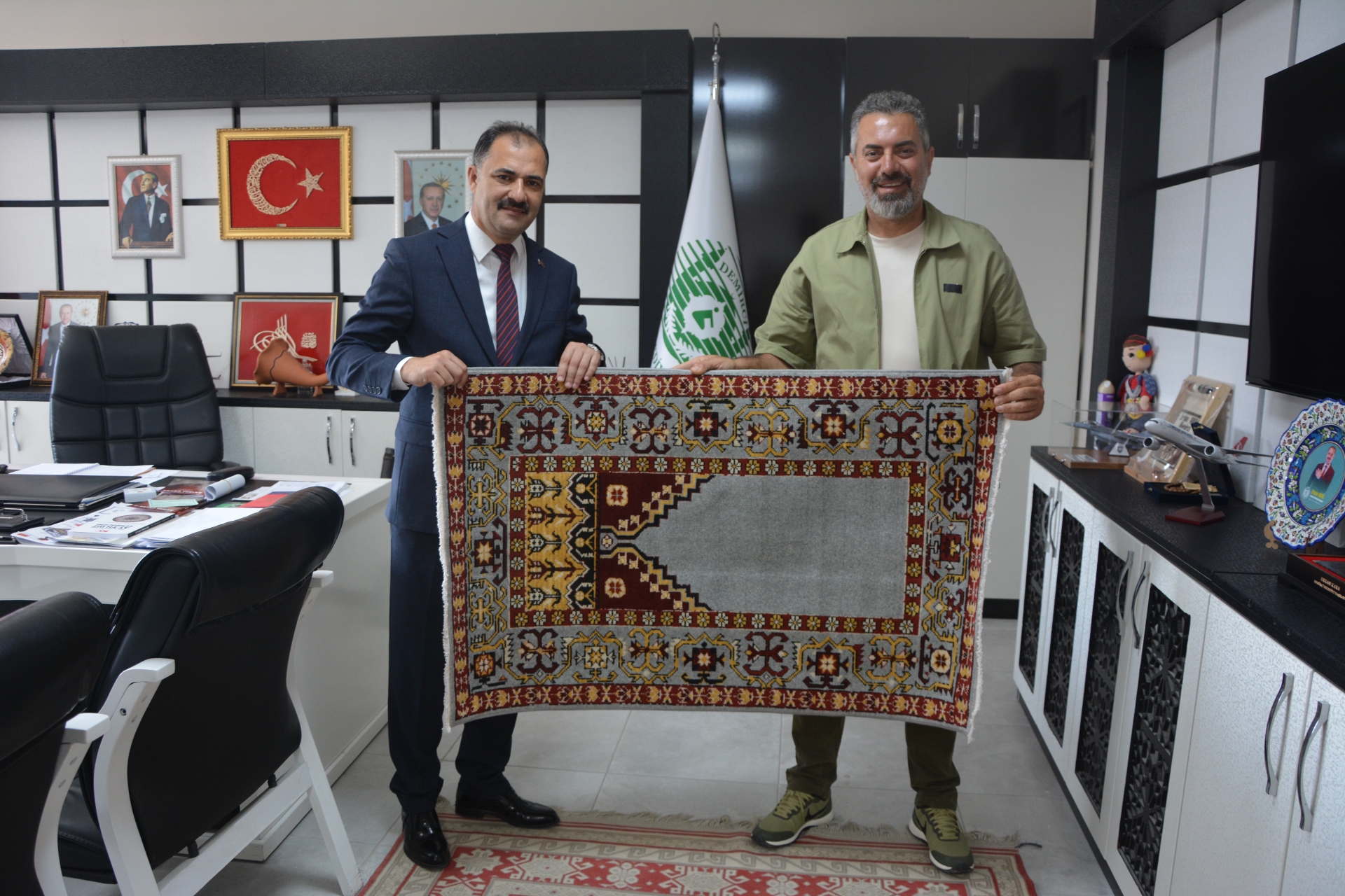 Sanatçı Turgay Başyayla program çekimleri öncesi Belediye Başkanımız Erkan Kara’yı makamında ziyaret etti.