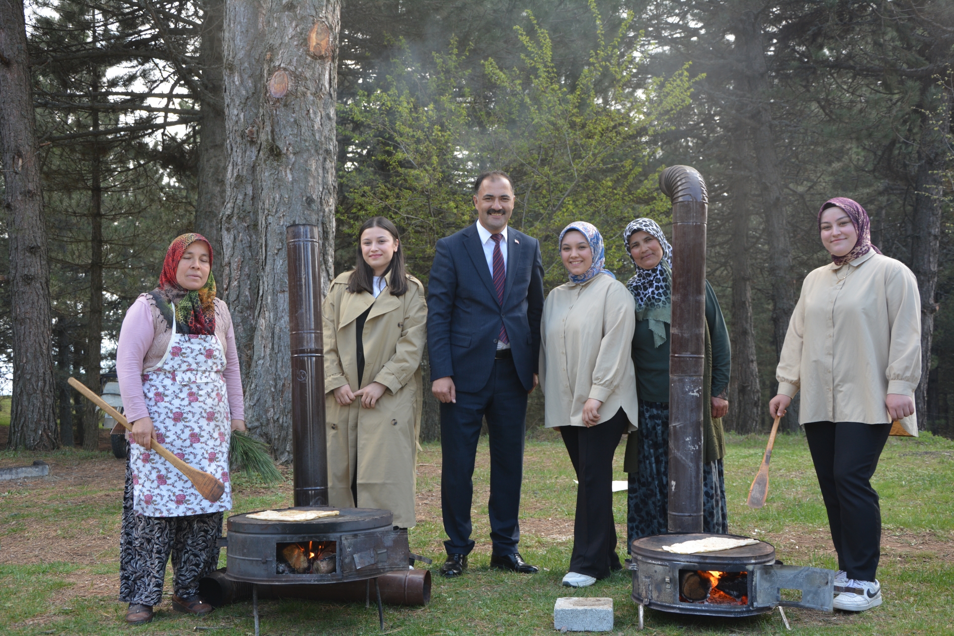 Sanatçı Turgay Başyayla Sarıçayır kamp alanındaki çekimlerde Demirci Bereket Ana Kadınlar Kooperatifindeki kadınlar tarafından Demirci Kebabı, Bamya, Keşkek ve Helva yapımının çekimlerini gerçekleştirdiler.