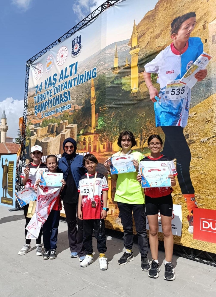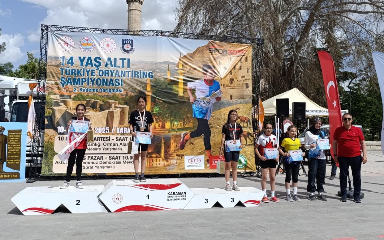 Karaman'da düzenlenen 14 yaş altı Türkiye Oryantiring Şampiyonası 2. kademe yarışlarının ilk günü yapılan orta mesafe yarışmasında sporcularımızdan