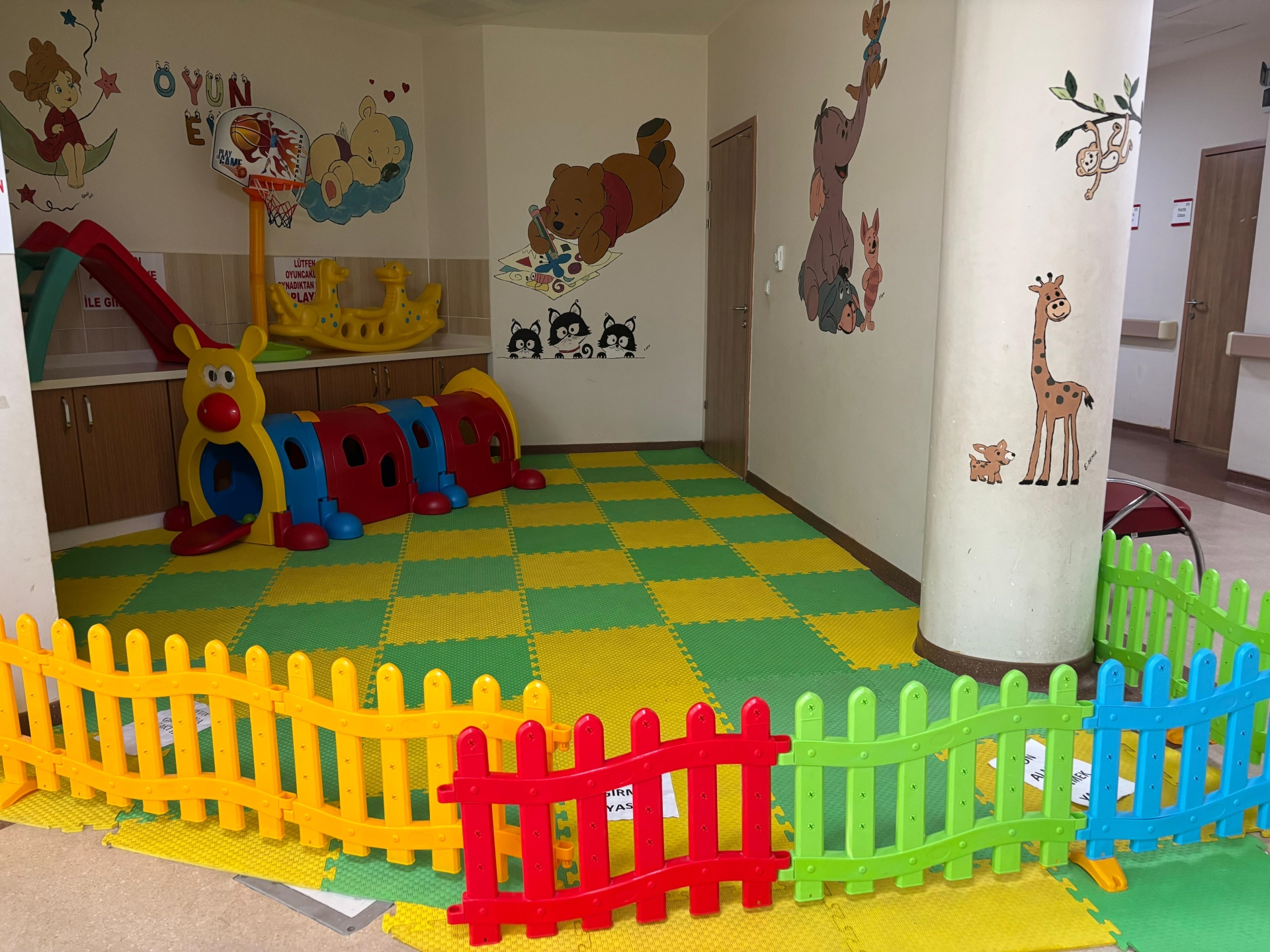 Devlet hastanesinde yetişkin hastaların yanı sıra çocuk hastalara yönelik hastane içerisinde çocuk oyun parkı da hizmet veriyor.