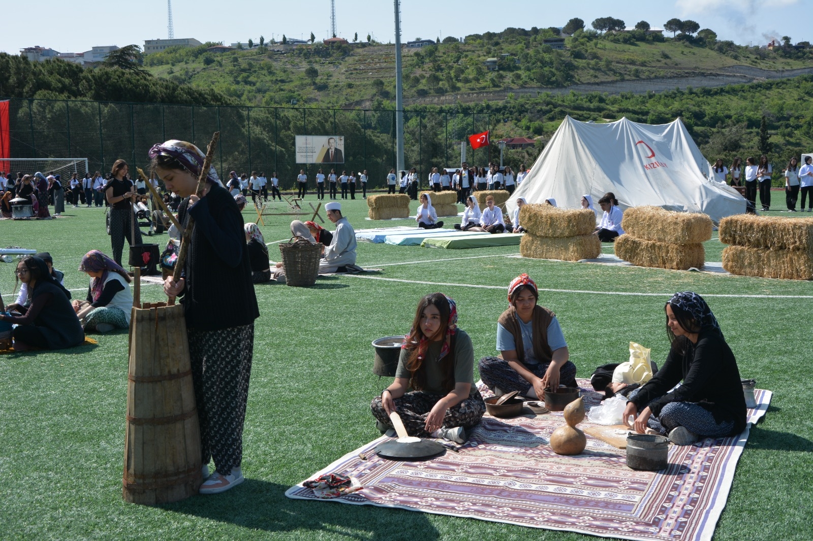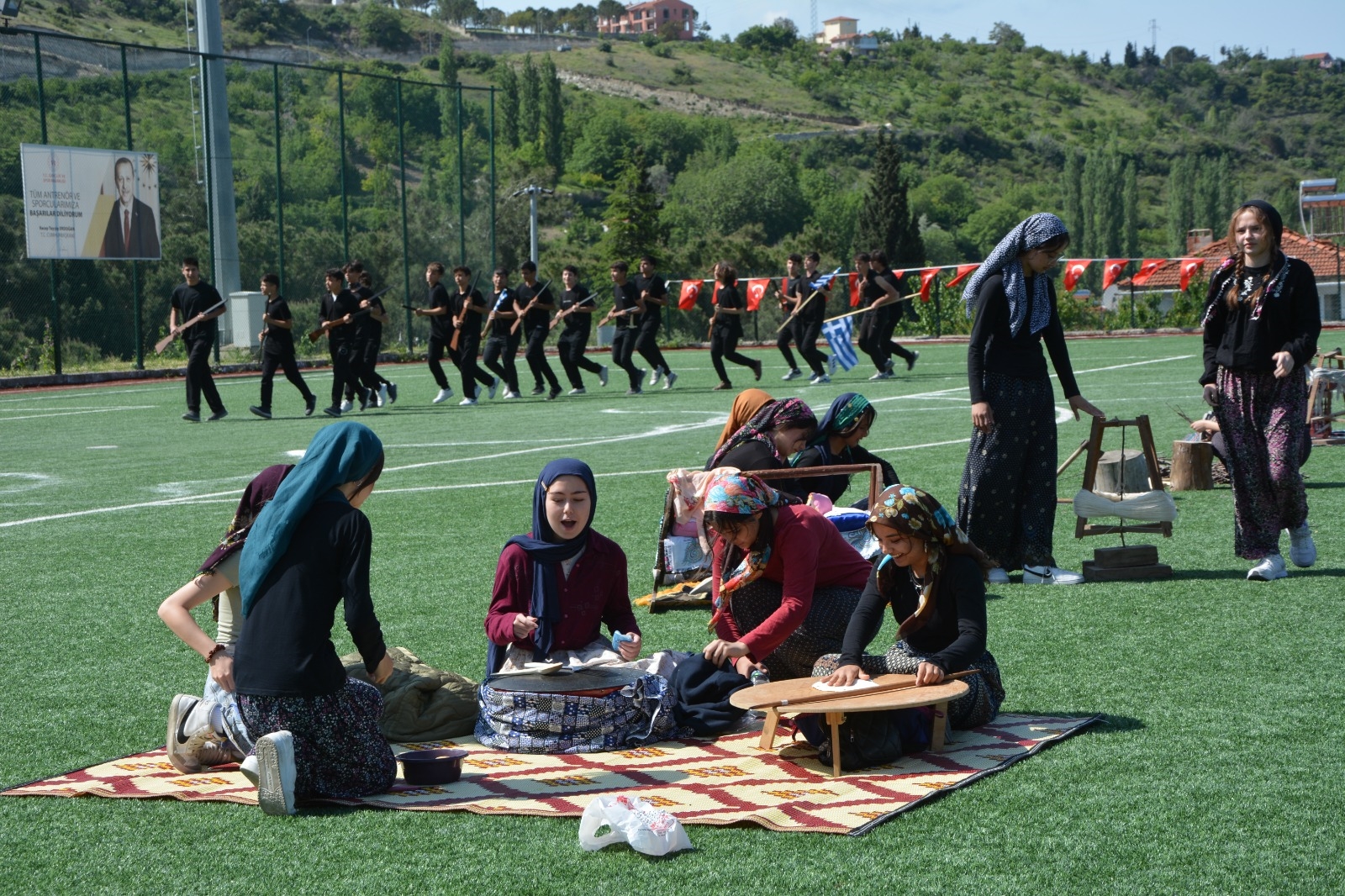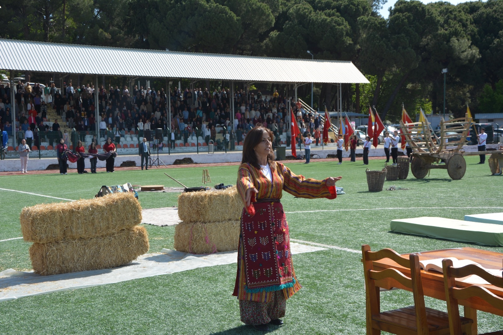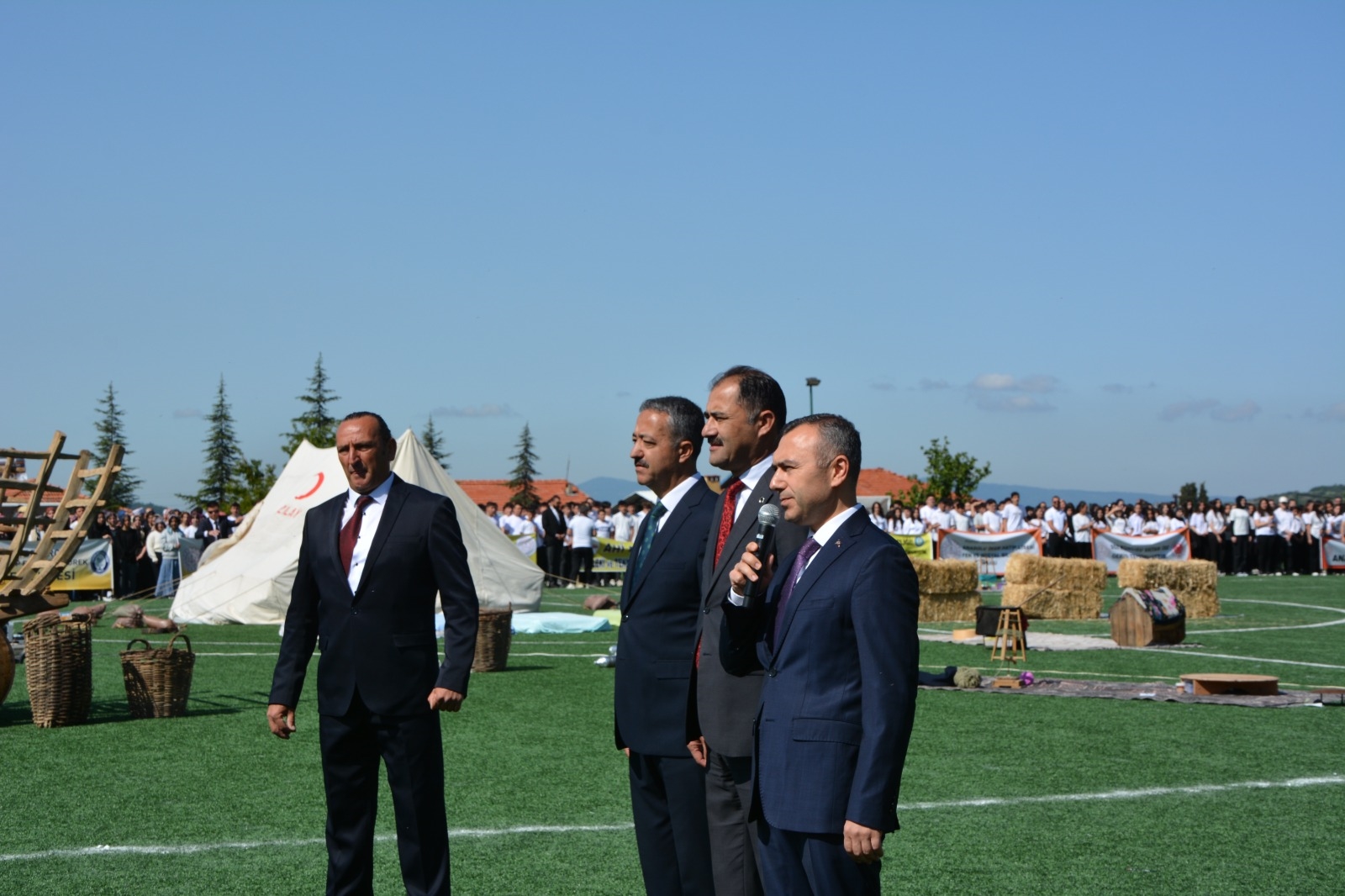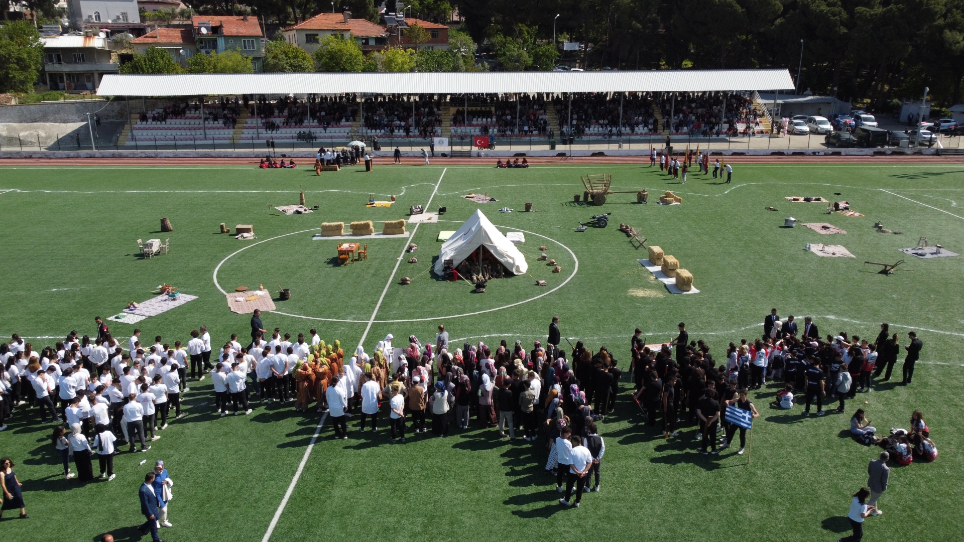Öğrencilerin Kurtuluş Savaşını anlatan gösterisi protokol ve ilçe halkı tarafından dakikalarca ayakta alkışlandı.