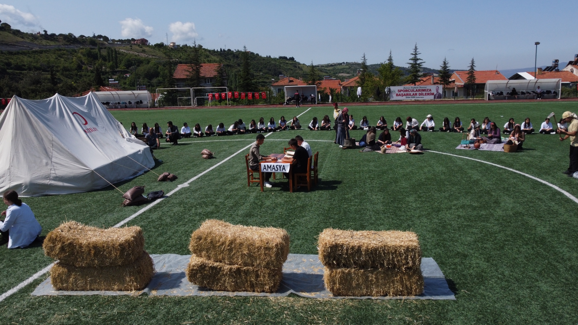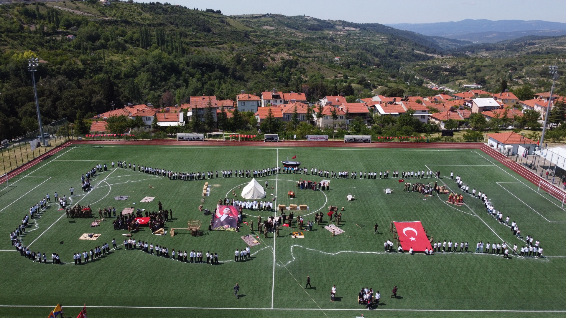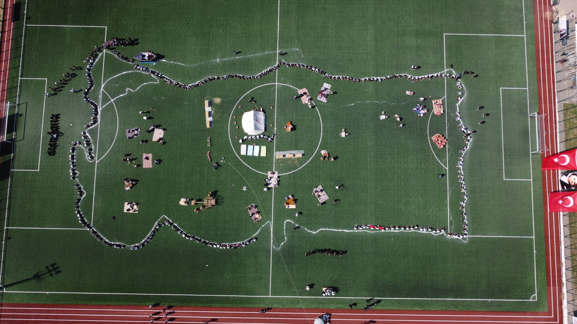 Milli Eğitim Müdürlüğü koordinasyonunda Necip Fazıl Kısakürek Fen Lisesi öğrencileri tarafından bedenleri ile stada dev Türkiye haritası çizildi.