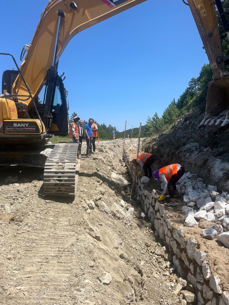1470 rakımlı Akçakertik mevkiden başlayan çalışmalar kapsamında Simav istikameti yönüne ekipler tarafından istinat duvarları yeniden yapılıyor.