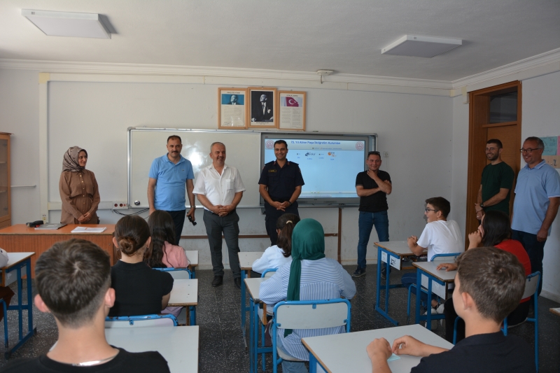 Belediye Başkanımız Erkan Kara, İlçe Jandarma Komutanı Üsteğmen Uğurcan Şahin ve İlçe Milli Eğitim Müdürü Bilal Çetinkaya ile birlikte 75. Yıl Alime Paşa Ortaokulunda karne dağıtım törenine katıldılar.