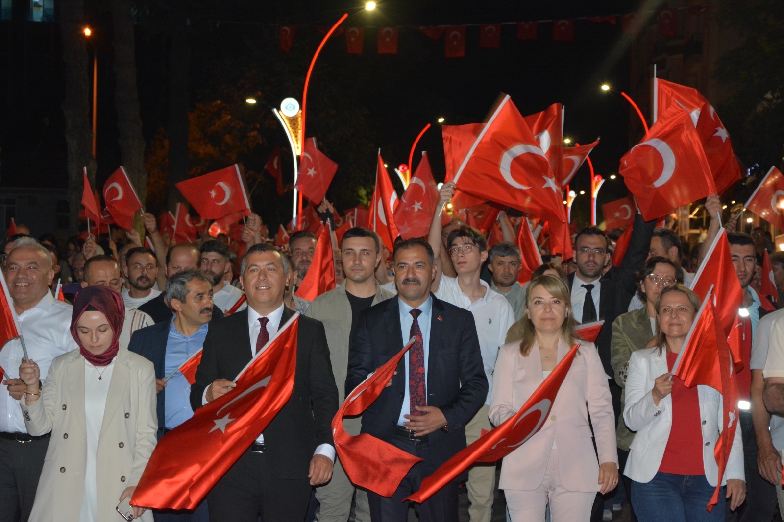 15 Temmuz Demokrasi ve Milli Birlik Günü etkinlikleri kapsamında Kaymakamlık önünden yeni belediye hizmet binası önüne kadar yürüyüş düzenlendi.