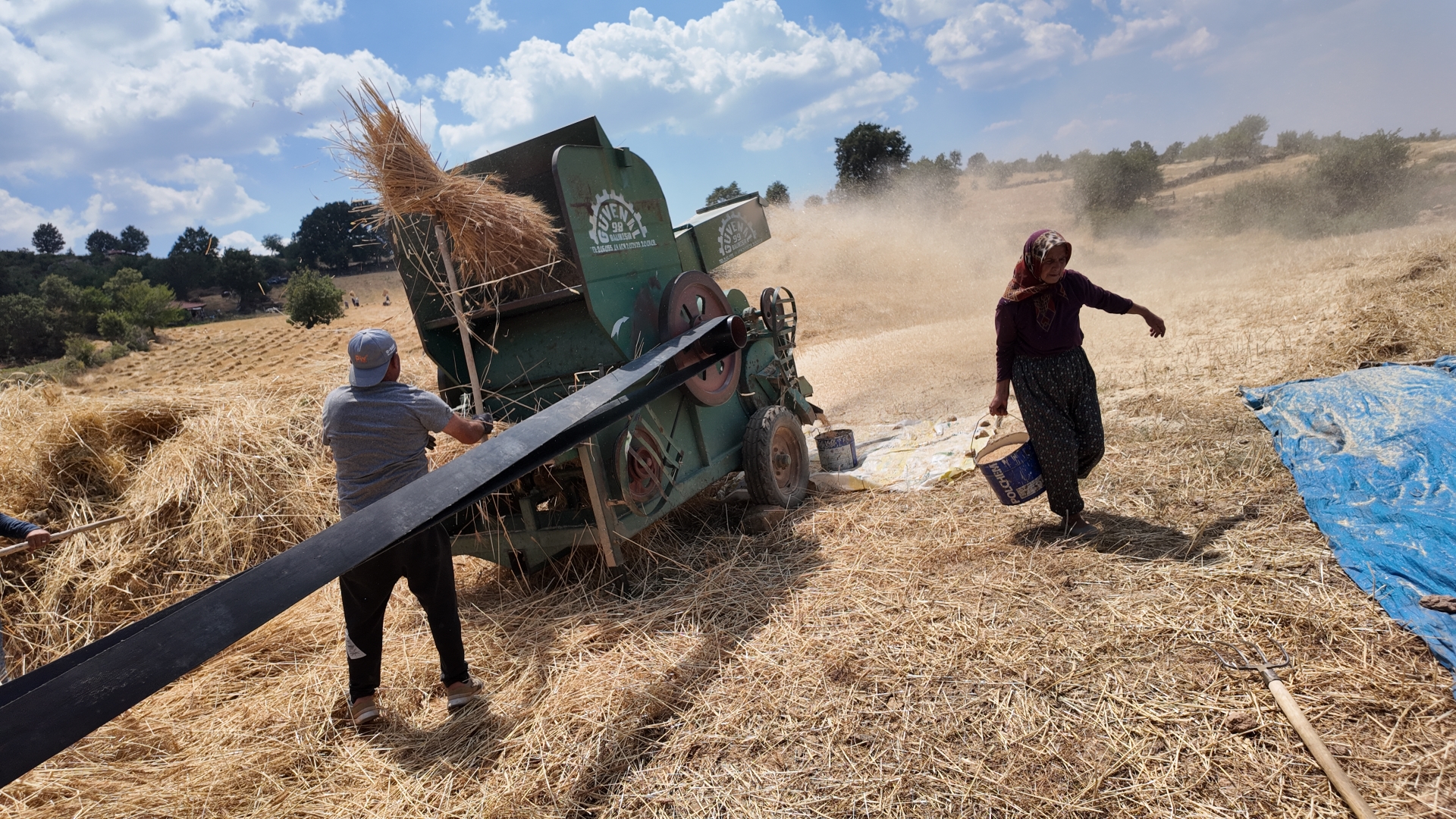 Çiftçi Hasan Sevgi ise” Çocukluğumdan bu yana tarla işinde çalışıyorum. Geçmişte hasat işlerinin daha zorluydu. Aslında şimdi bir nebze daha kolay. Eskiden hasadı kızakla veya kağnı arabasıyla yapardık. O zaman harman oluşturuldu. Toprağın verdiğini hiçbir şey vermez. Biz bugünlere tarlalarda çalışarak geldik. Bu işlerin en güzel yanı yardımlaşarak yapmak." dedi.