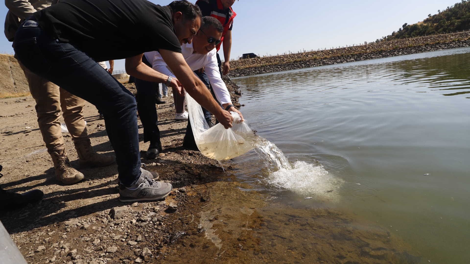 Kaymakamımız Fatih Bayram, Belediye Başkanımız Erkan Kara, Jandarma Komutanı Üsteğmen Uğurcan Şahin ve İlçe Tarım ve Orman Müdürü Faruk Şenyurt'un katılımı ile yavru sazan balıklar barajlardaki suyla buluştu.