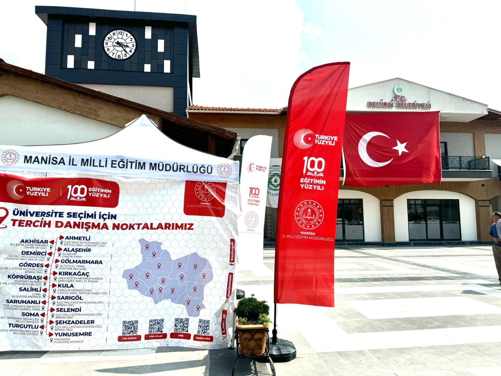 1 – 13 Ağustos 2025 tarihleri arasında yapılacak olan YKS tercihleri için Demirci Milli Eğitim Müdürlüğü koordinasyonunda Demirci Belediyesi girişinde oluşturulan stanta Rehberlik ve Araştırma Merkezinde görevli alanında uzman öğretmenler tarafından tercih yapacak öğrencilere destek veriyorlar.