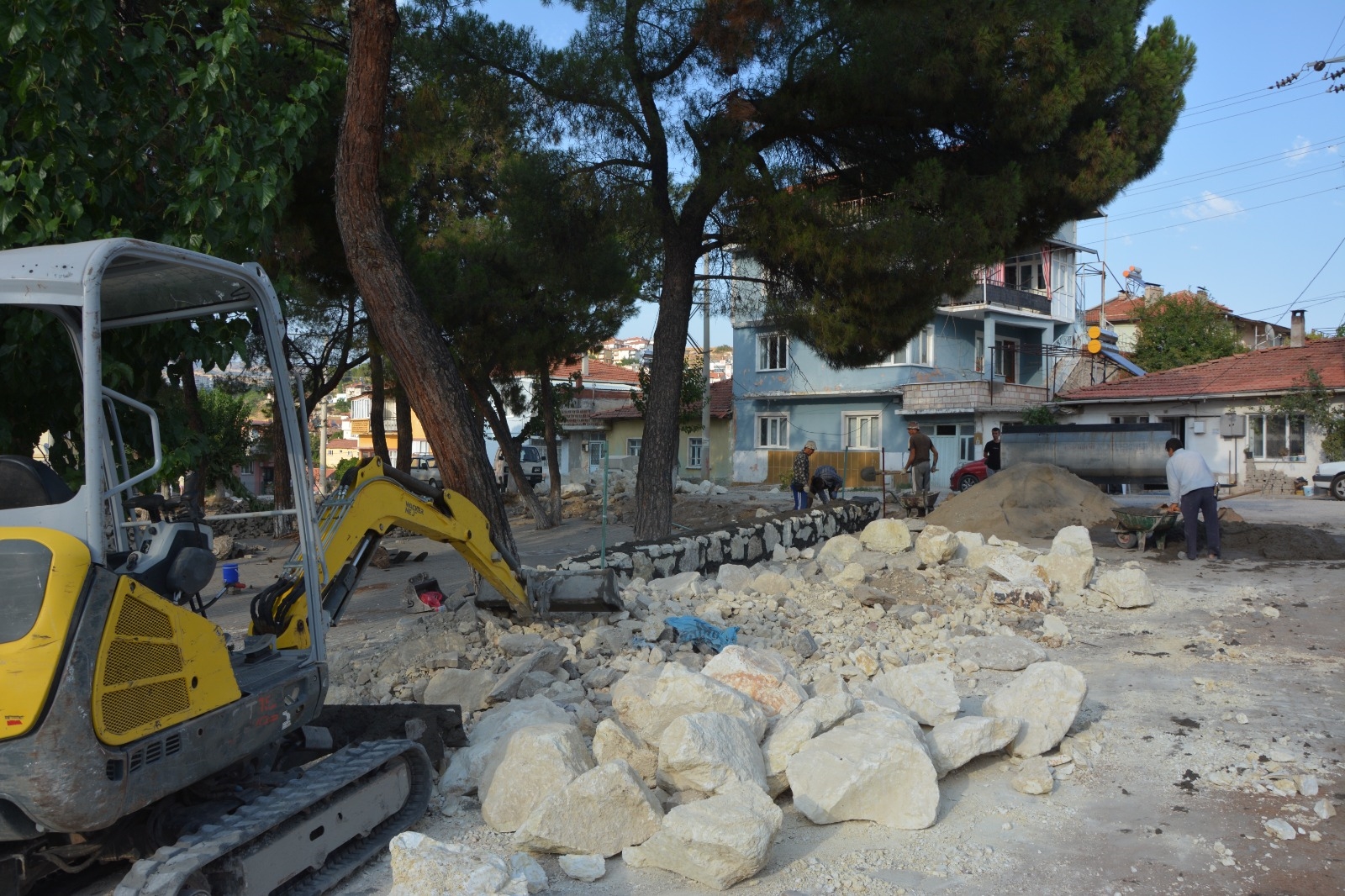 Kozağaç parkında çalışmalar kapsamında parkın eğimi düzenlenirken, çevre istinat duvarları da yenileniyor.