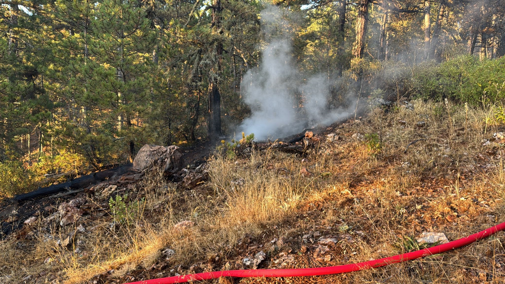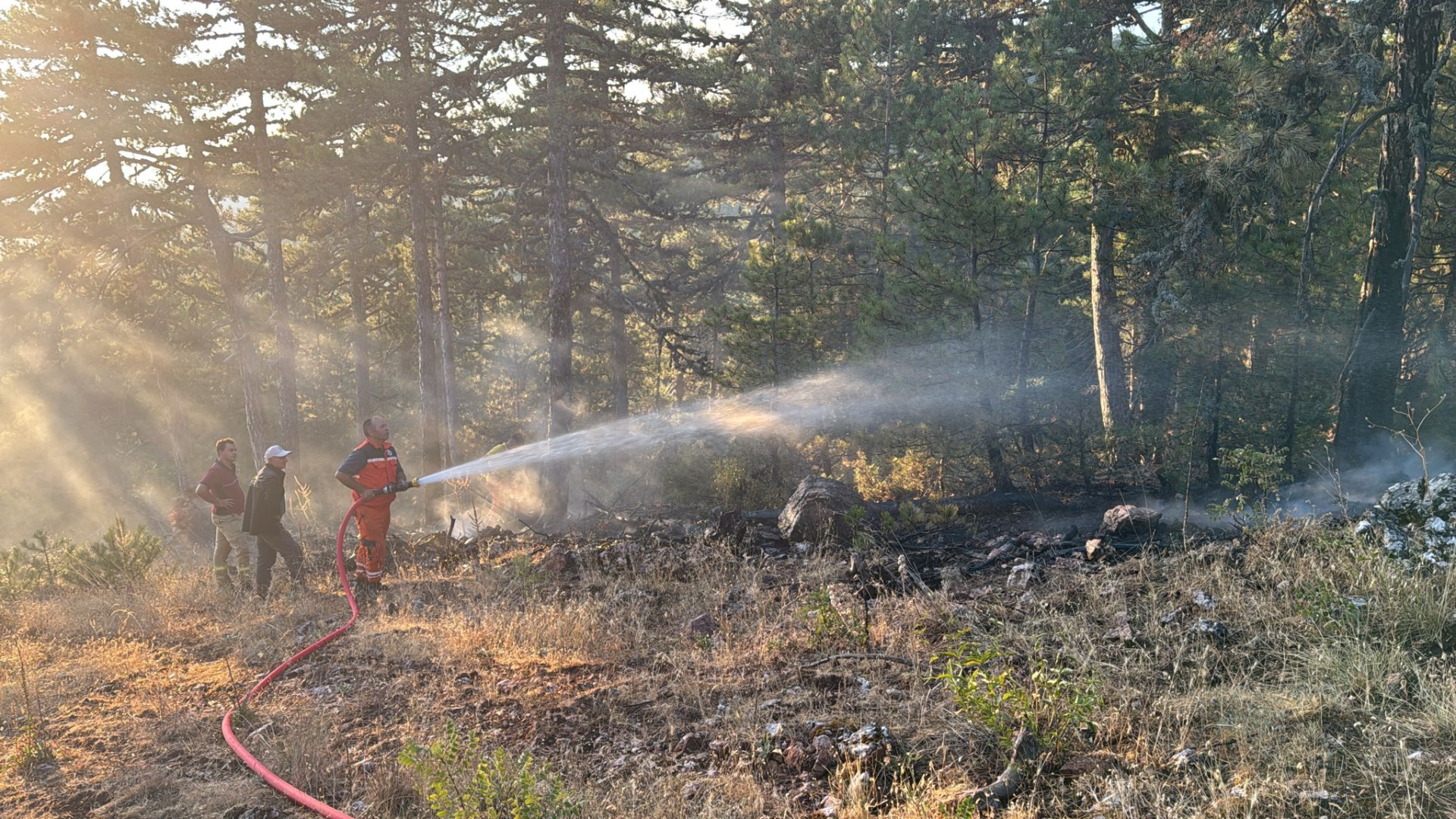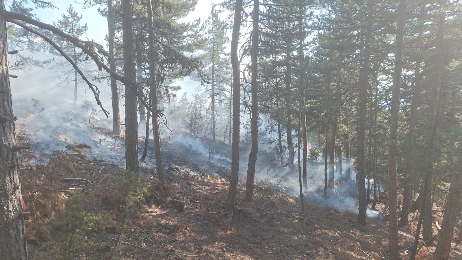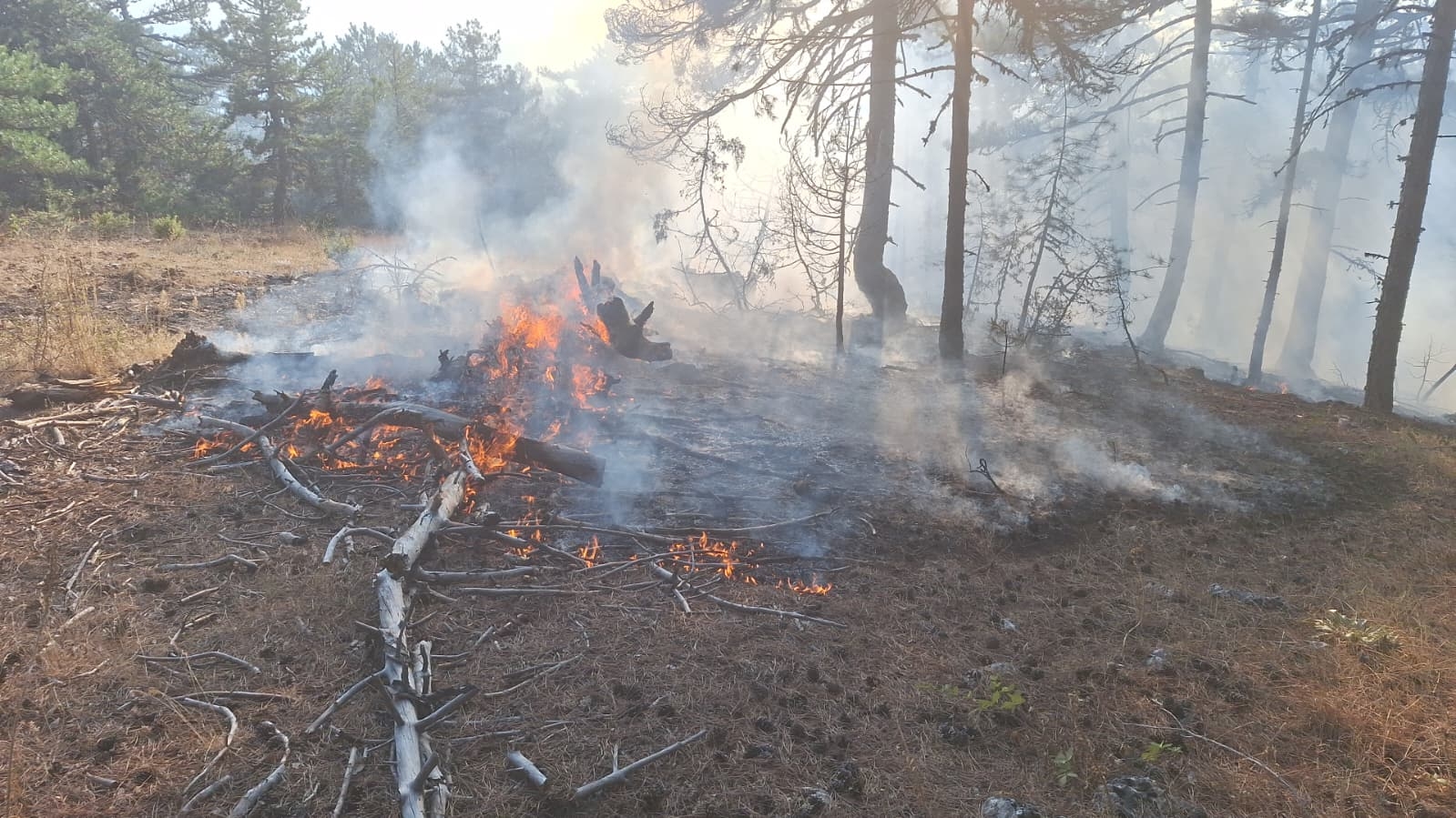 Meydana gelen yangında yaklaşık 500 metrekarelik kara çam ormanı zarar gördü.