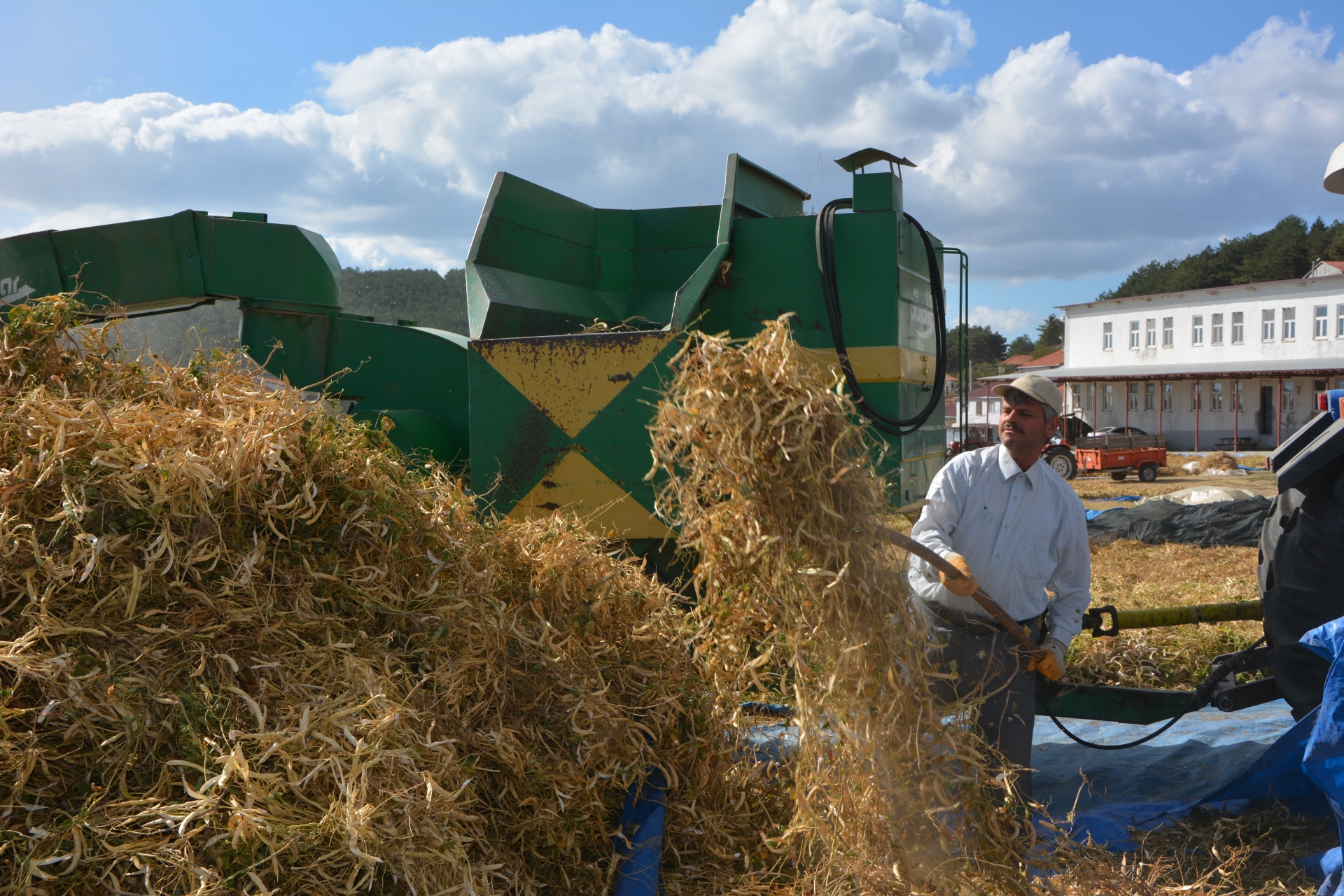 3 ila 5 gün harmanda serili kalan fasulye başakları daha sonra geleneksel usul olan çomak ile çırpma, traktör ile ezme yapılırken, patoz makinesi ile de yapılabiliyor.