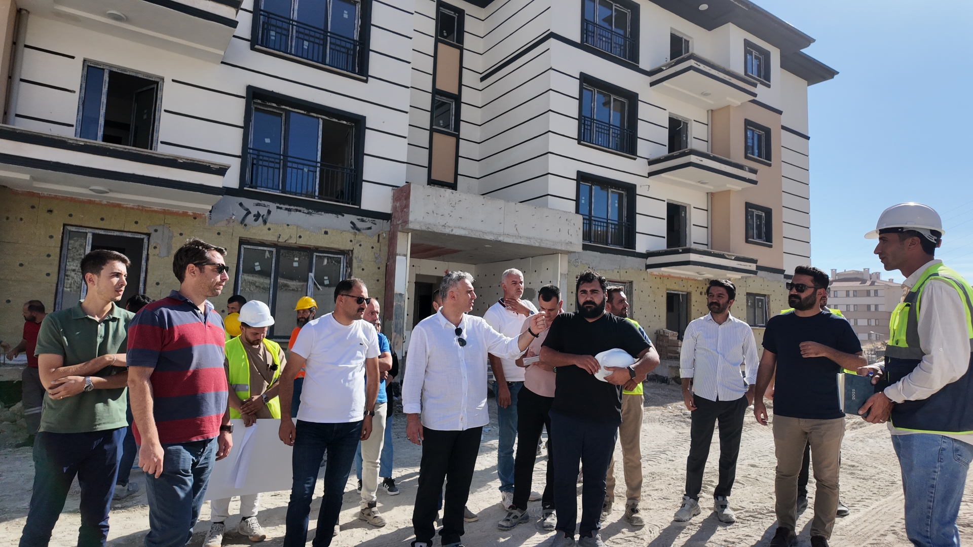 TOKİ 4 nolu Uygulama Dairesi Başkanı Fikret Dikkanoğlu incelemede inşaat çalışmalarında ve bina yapımlarında yapılan çalışmaları denetlerken, dikkat etmeleri gereken hususlar üzerine de uyarılarda bulundu.