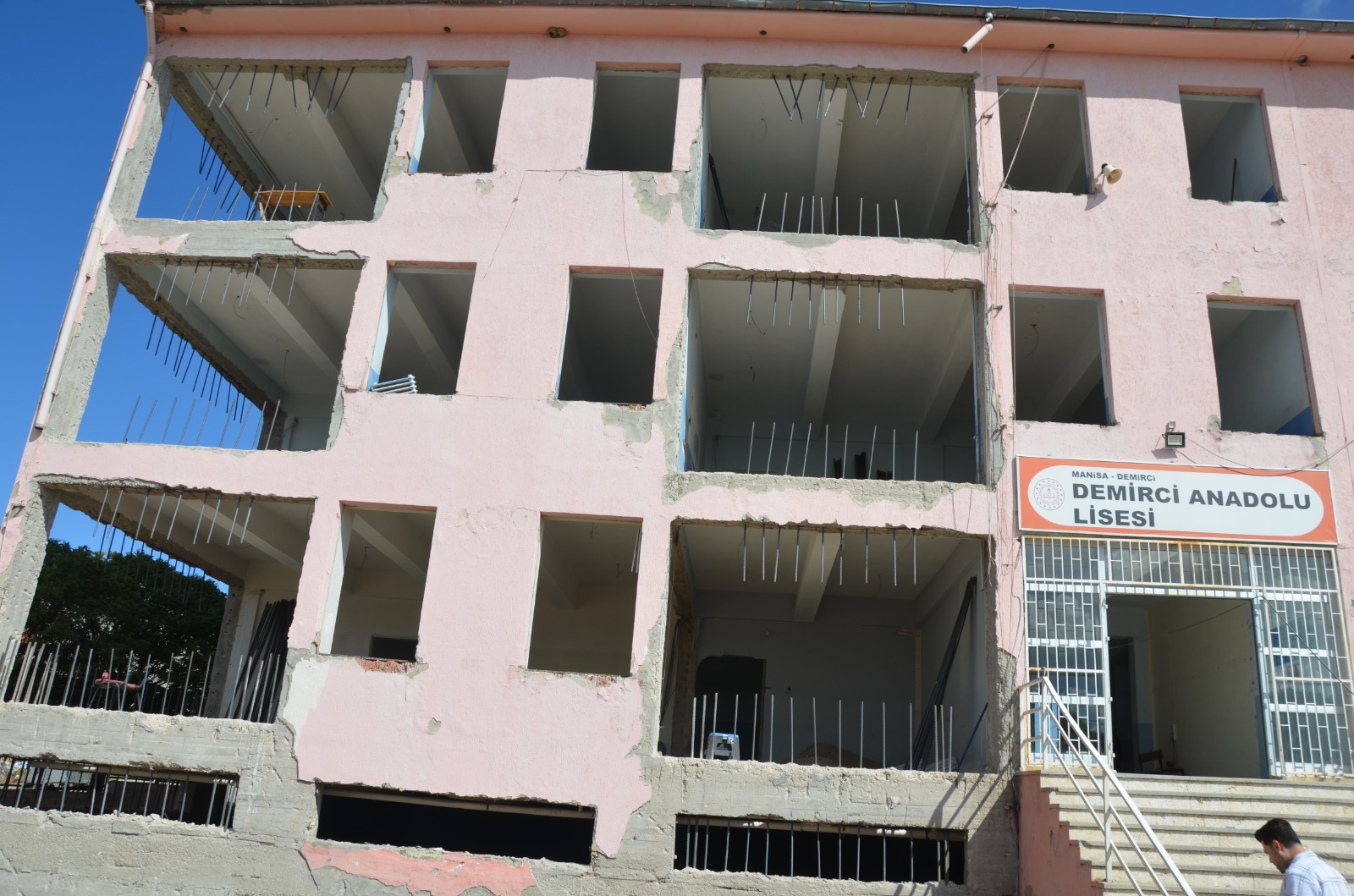Demirci’de 25 yıllık okul binası olan Anadolu Lisesi binasına deprem güçlendirme çalışması yapılıyor.