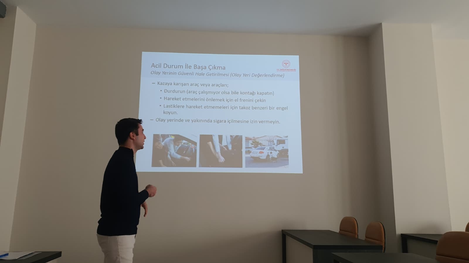 Manisa İl Sağlık Müdürlüğü tarafından görevlendirilen İlk Yardım Eğitmenleri Yağmur Akbulut ve Şuayp Akbulut tarafından verilen eğitimlerde boğulma, yangın, doğal afetler, trafik kazaları, zehirlenmeler ve yaralanmalar gibi durumlarda yapılması gereken temel ilk yardım adımları anlatıldı.