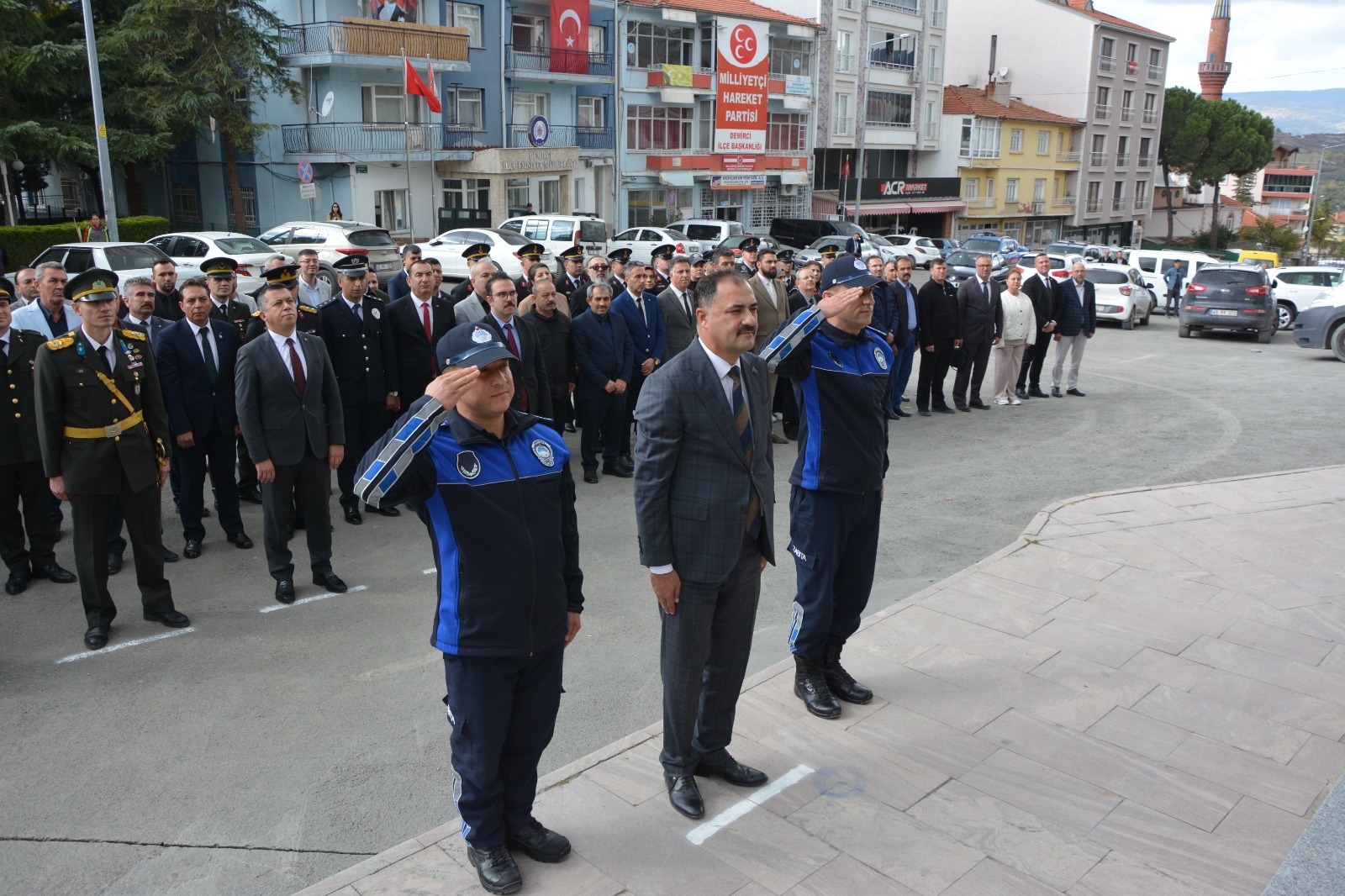 28 Ekim 2025 Salı günü 15 Temmuz Demokrasi ve Şehitler Meydanı Atatürk anıtı önünde düzenlenen törene Demirci Kaymakamı Fatih Bayram, Garnizon Komutanı Mly. Binbaşı Hüseyin Cihan Korkmaz, Belediye Başkanımız Erkan Kara, Cumhuriyet Başsavcısı Emre Aytaç, Eğitim Fakültesi Dekanı Prof. Dr. Fatma Şaşmaz Ören, İlçe Jandarma Komutanı Üsteğmen Uğurcan Şahin, İlçe Emniyet Müdürü Barış Kayar, kurum müdürleri, siyasi parti ilçe başkanları, oda başkanları ve vatandaşlar katıldı.