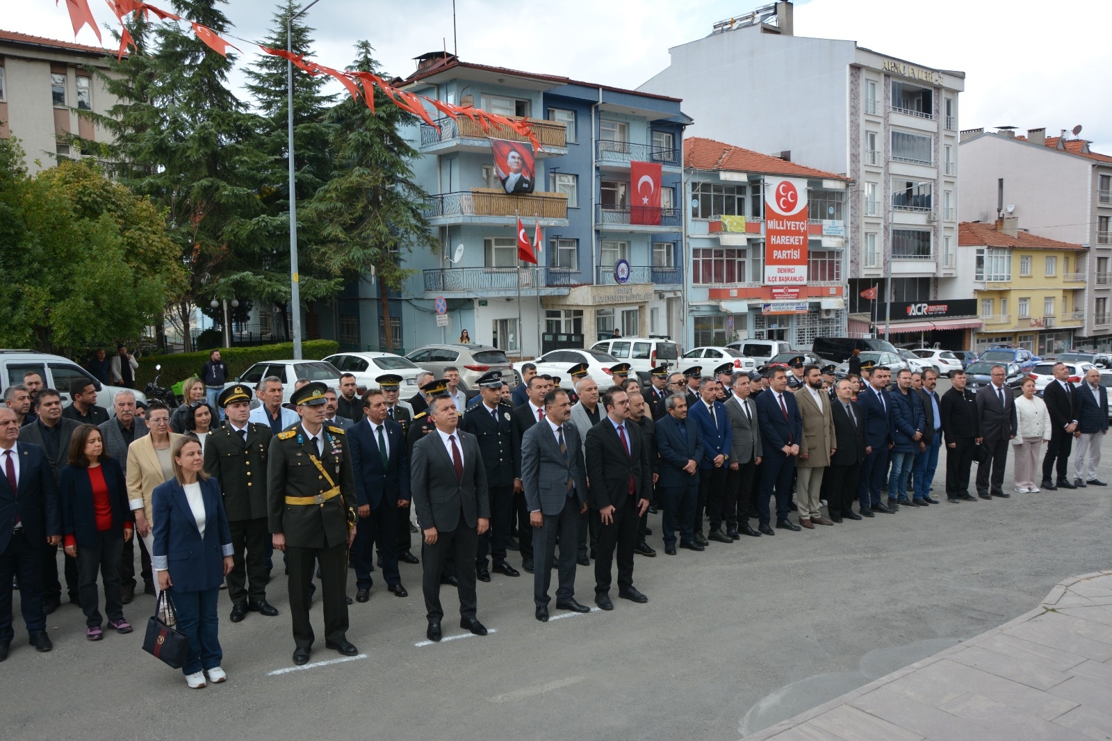 Törende ilk olarak Kaymakam Fatih Bayram, Belediye Başkanımız Erkan Kara, Garnizon Komutanı Mly. Binbaşı Hüseyin Cihan Korkmaz tarafından Atatürk anıtına çelenk sunumu yapıldı.