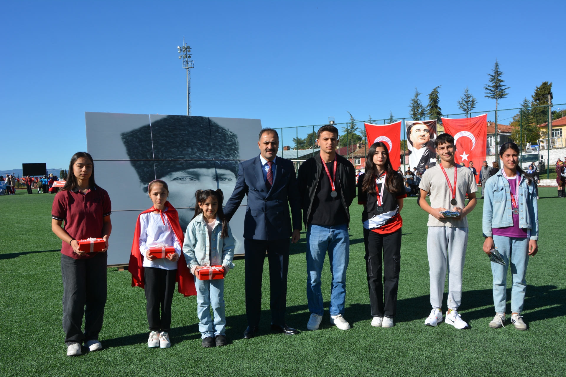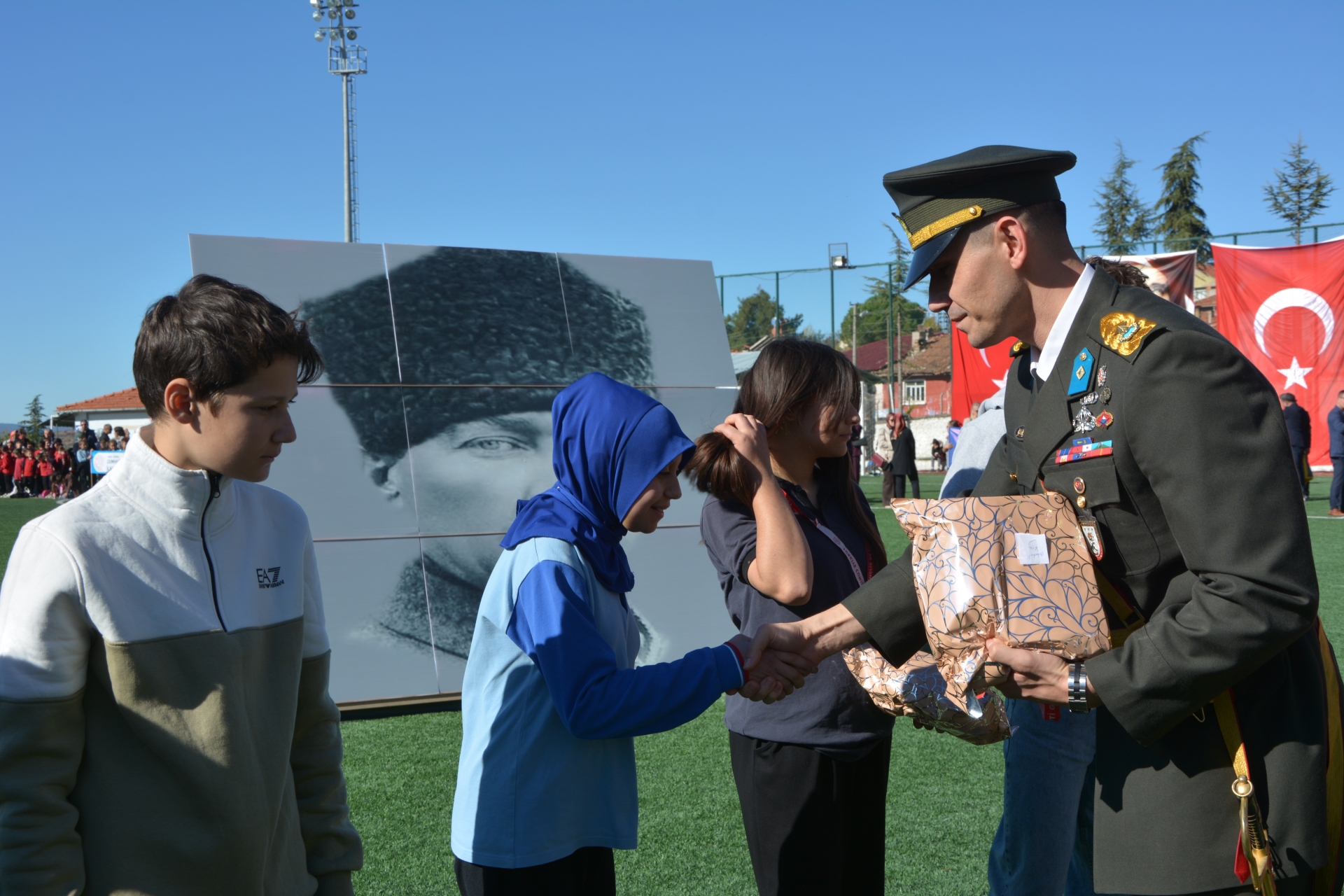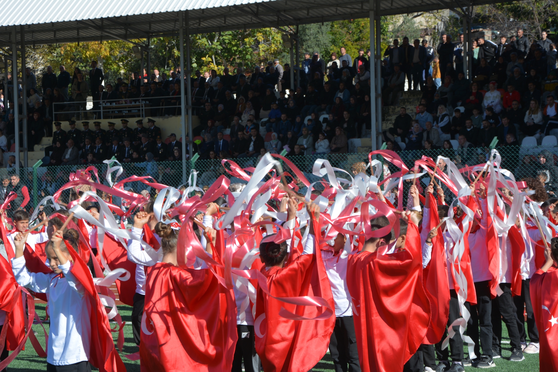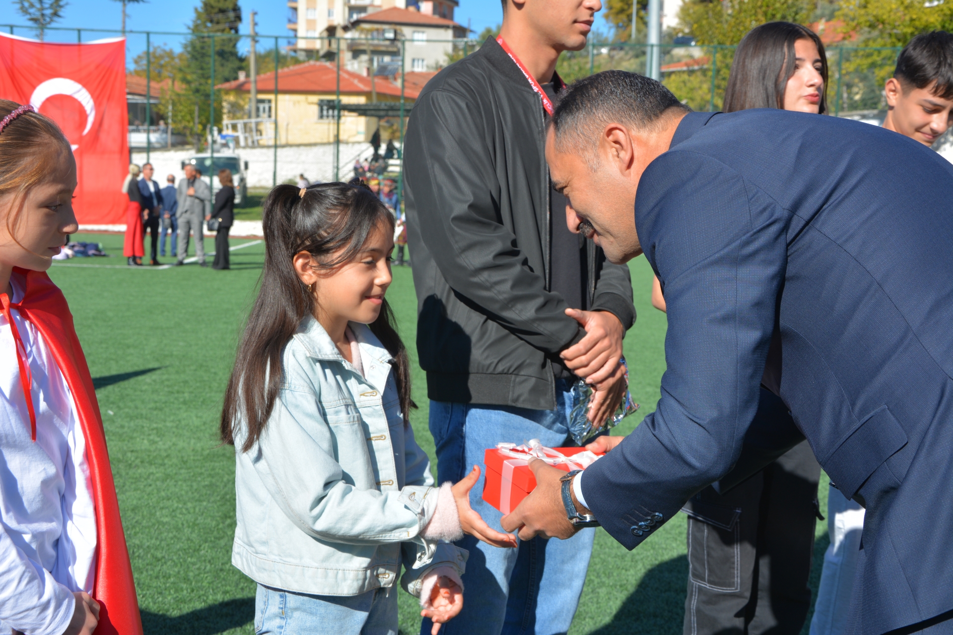 Kaymakam İbrahim Ethem Akıncı stadında düzenlenen Cumhuriyet Bayramı kutlamalarında Kaymakam Fatih Bayram öğrencileri ve halkın bayramını kutladı.