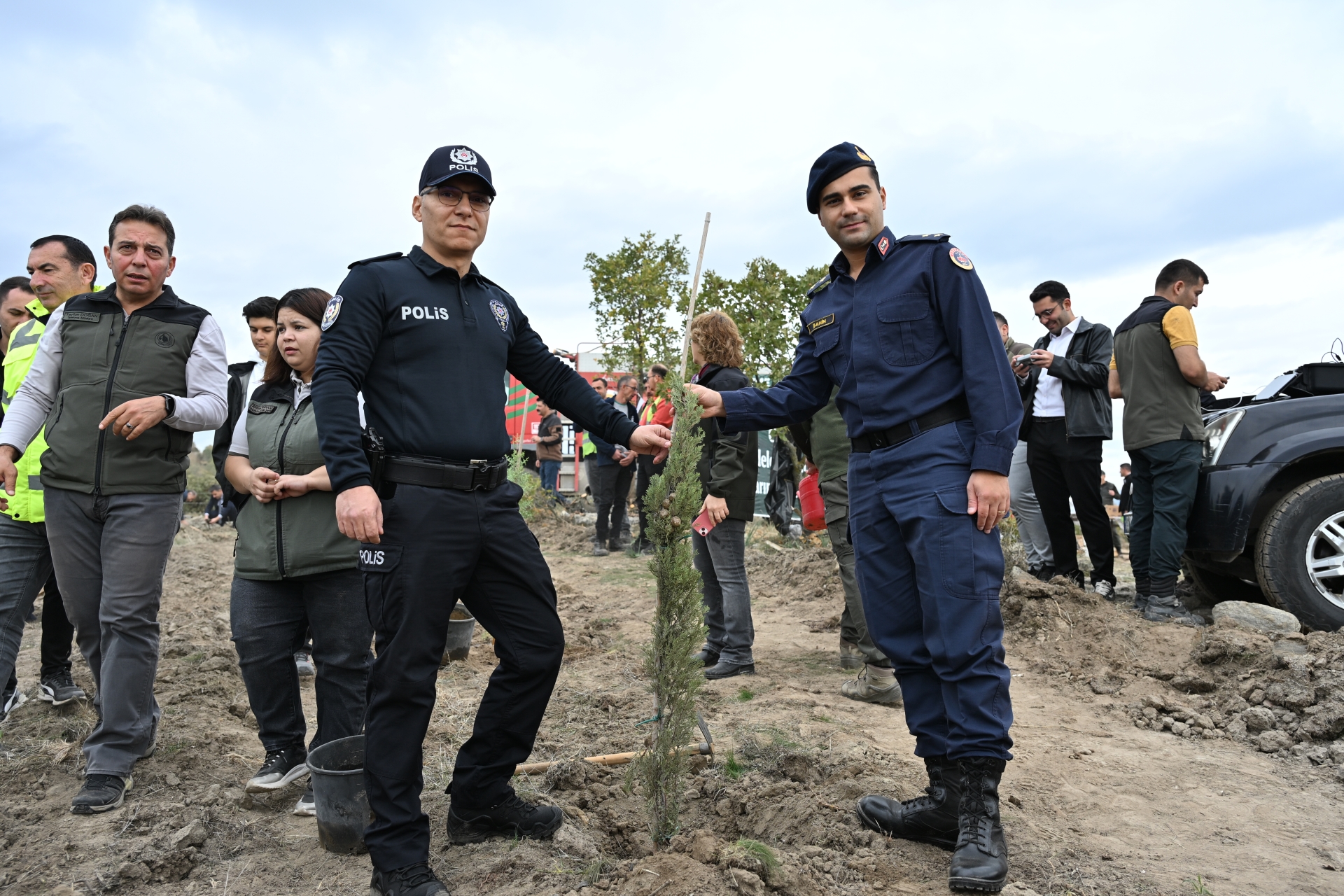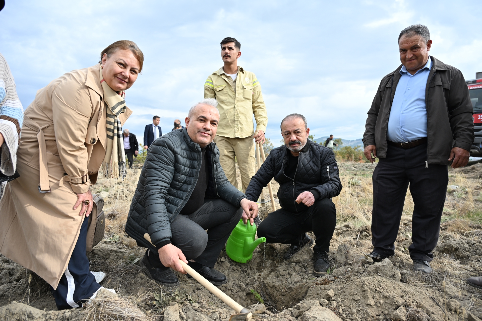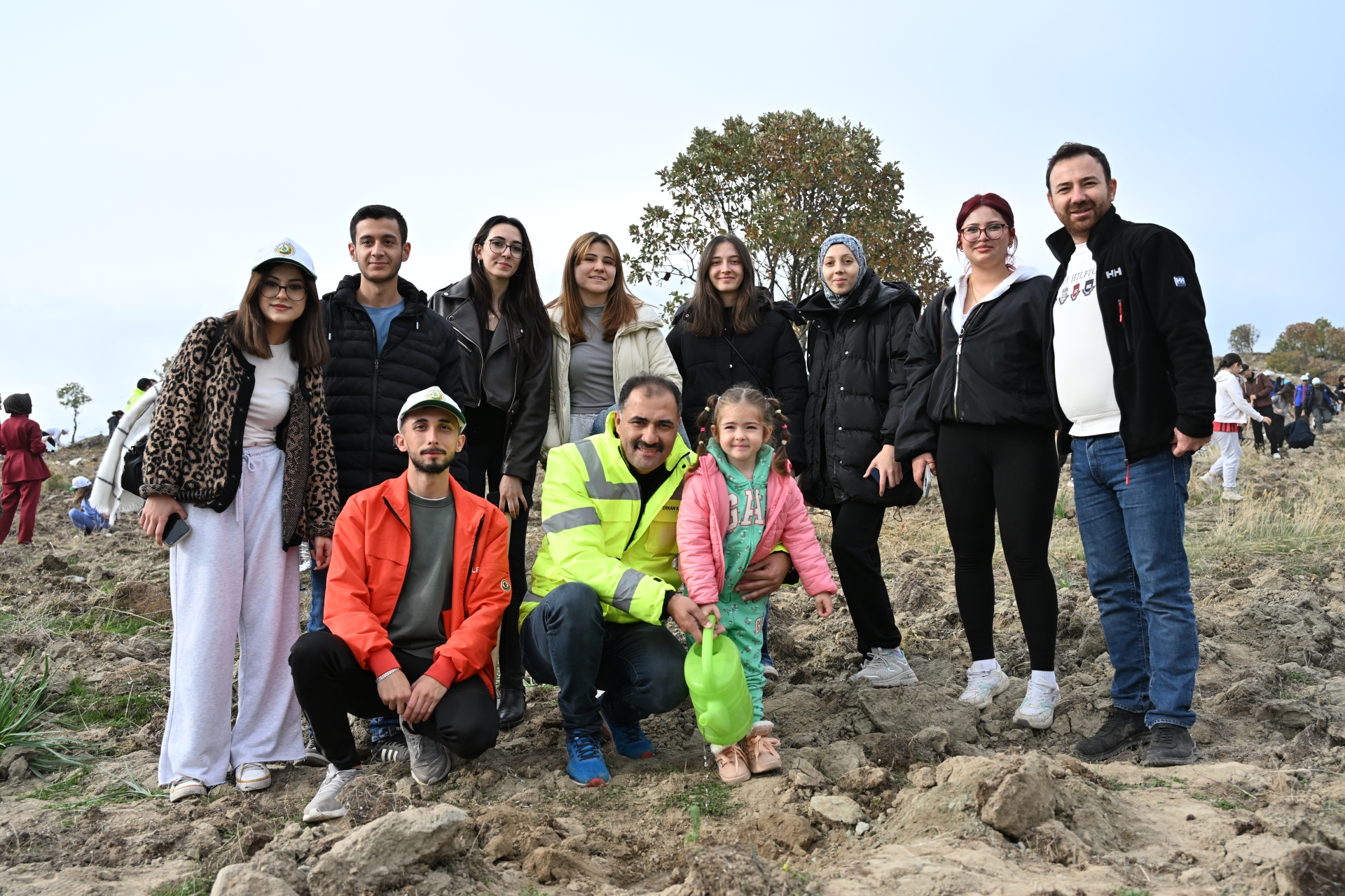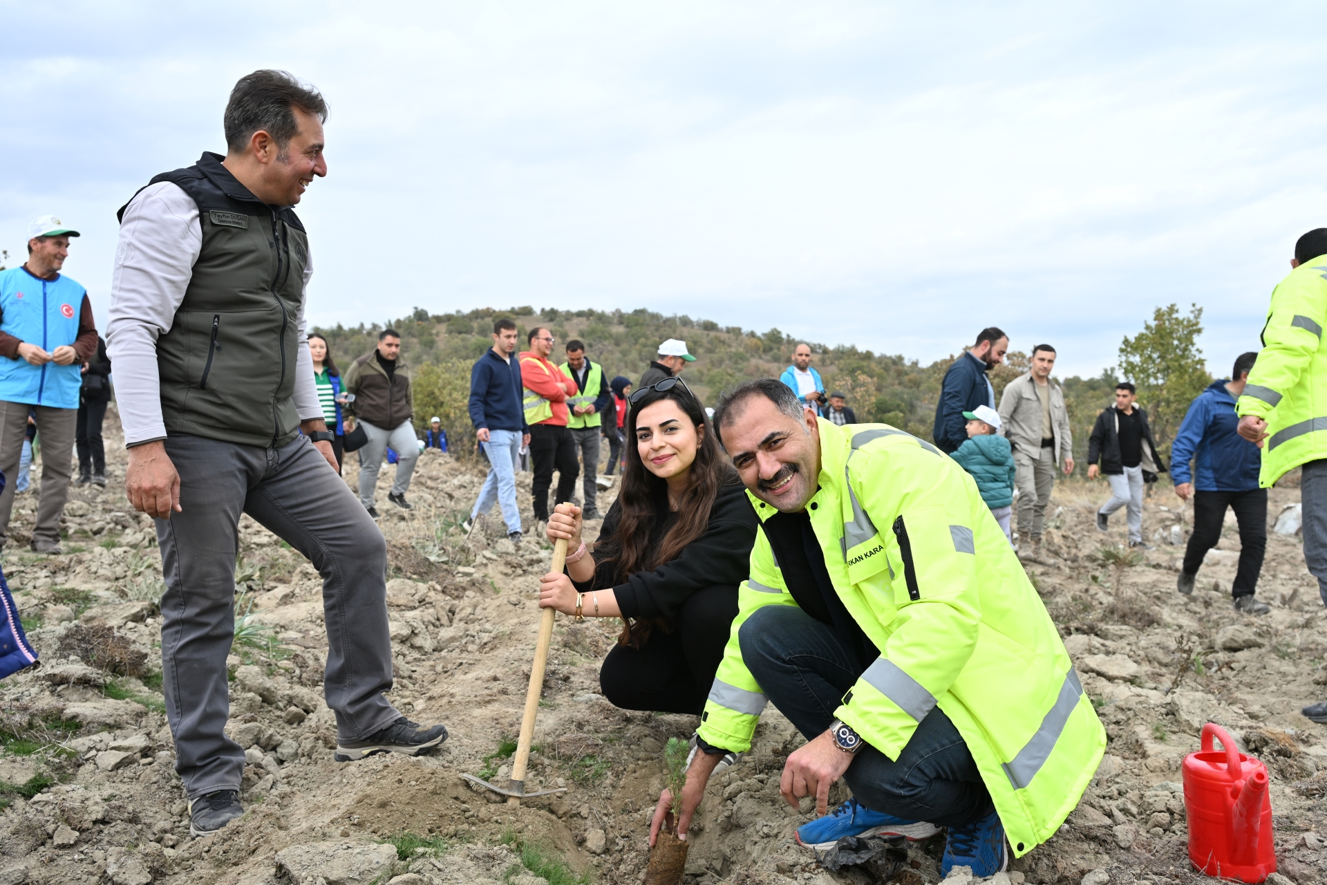 Katılımcılar, doğaya sahip çıkmak ve yeşil alanları çoğaltmak adına ellerine kürek alarak fidanları toprakla buluşturmanın mutluluğunu yaşadı.