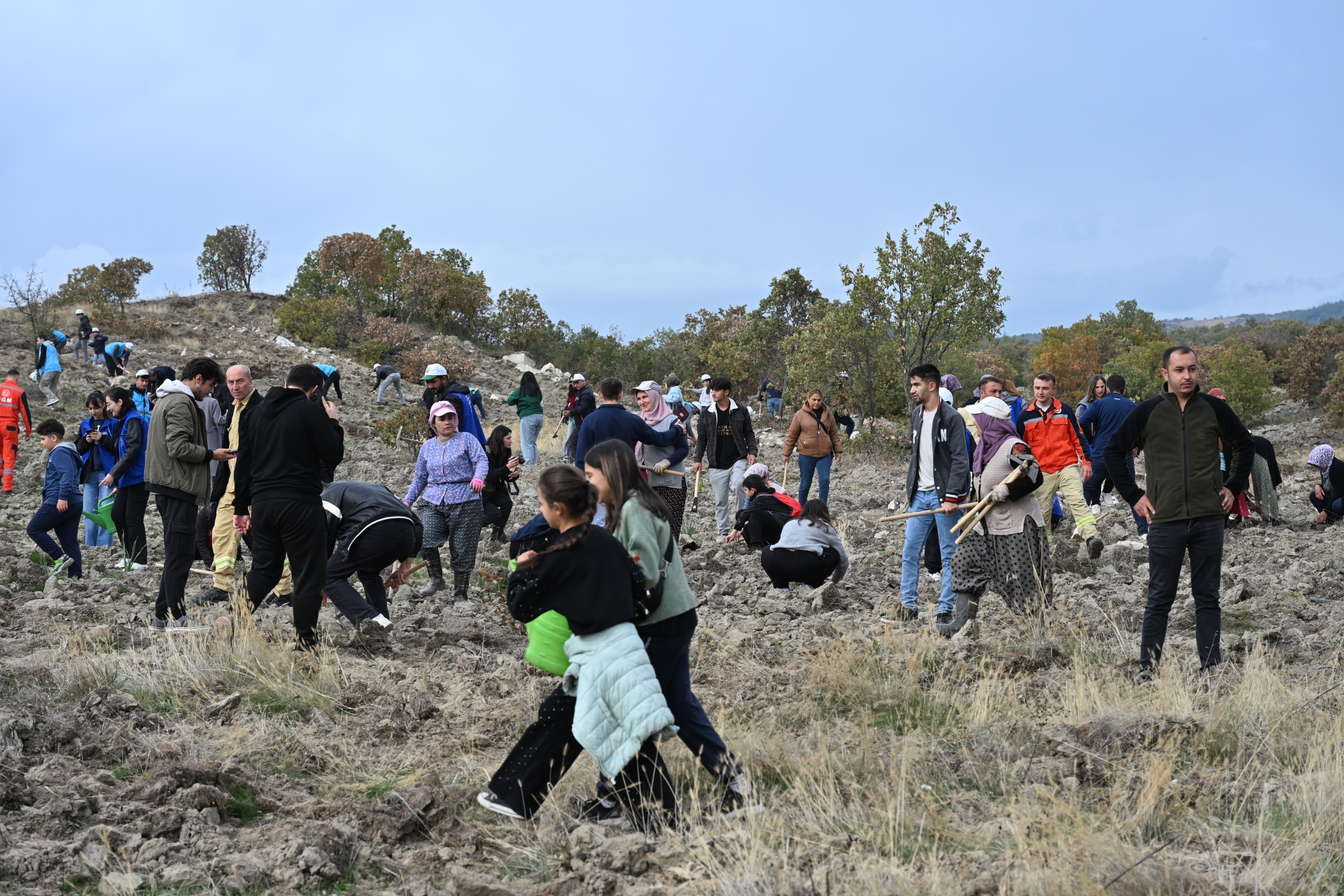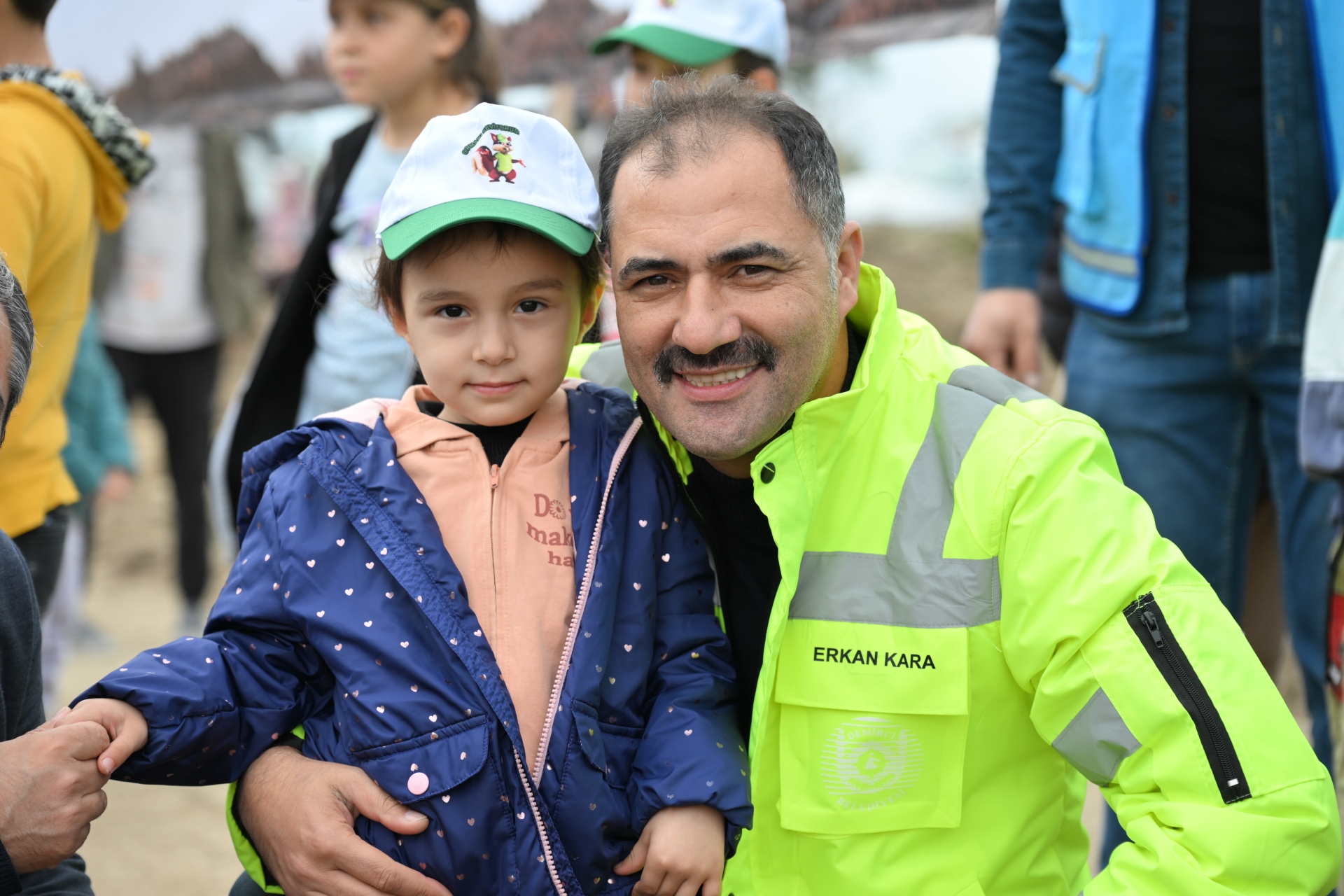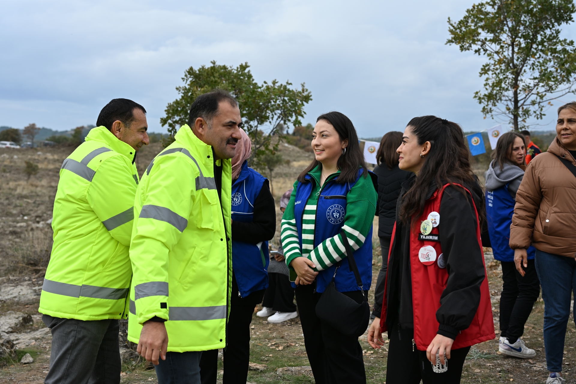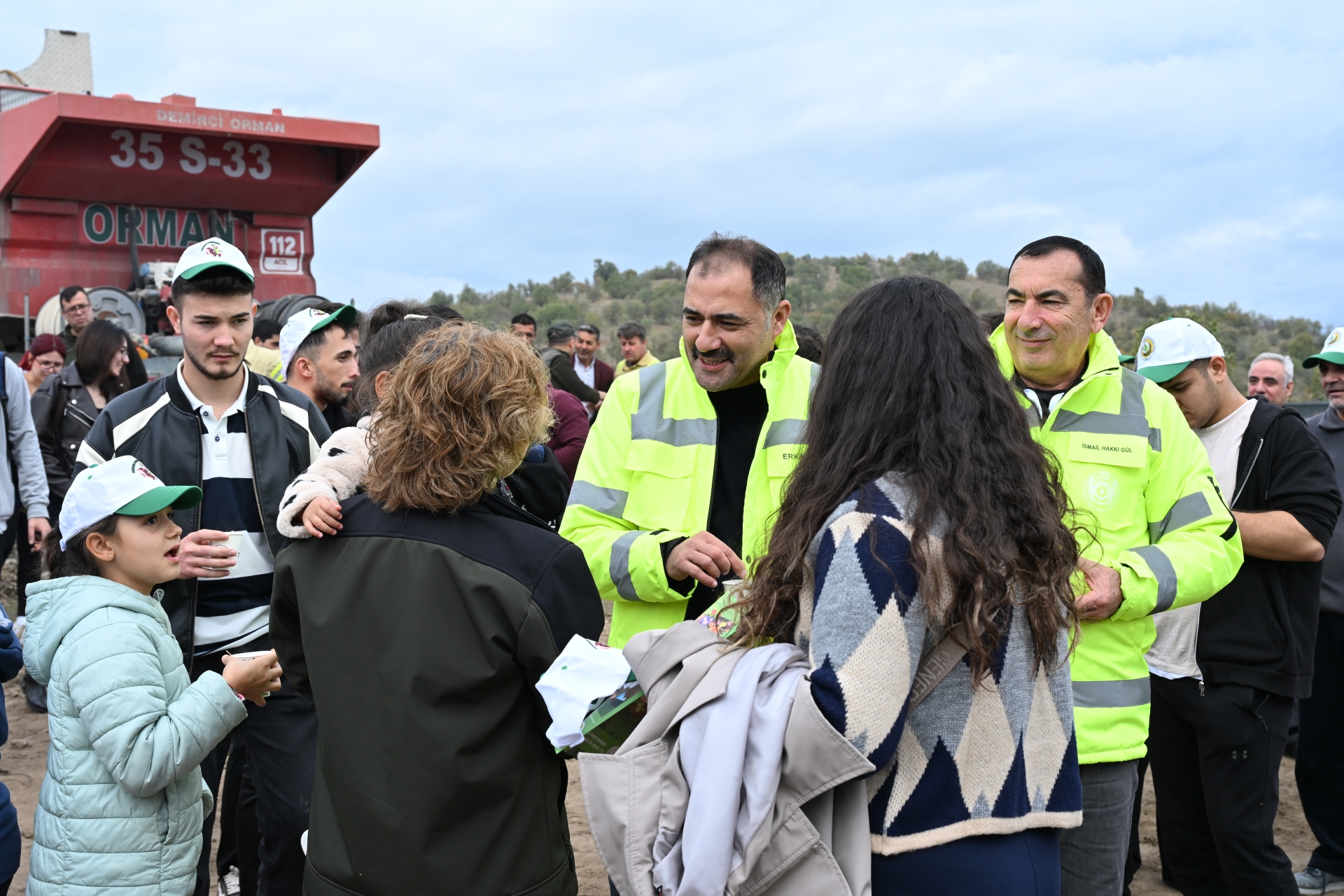 Katılımcılar, doğaya sahip çıkmak ve yeşil alanları çoğaltmak adına ellerine kürek alarak fidanları toprakla buluşturmanın mutluluğunu yaşadı.