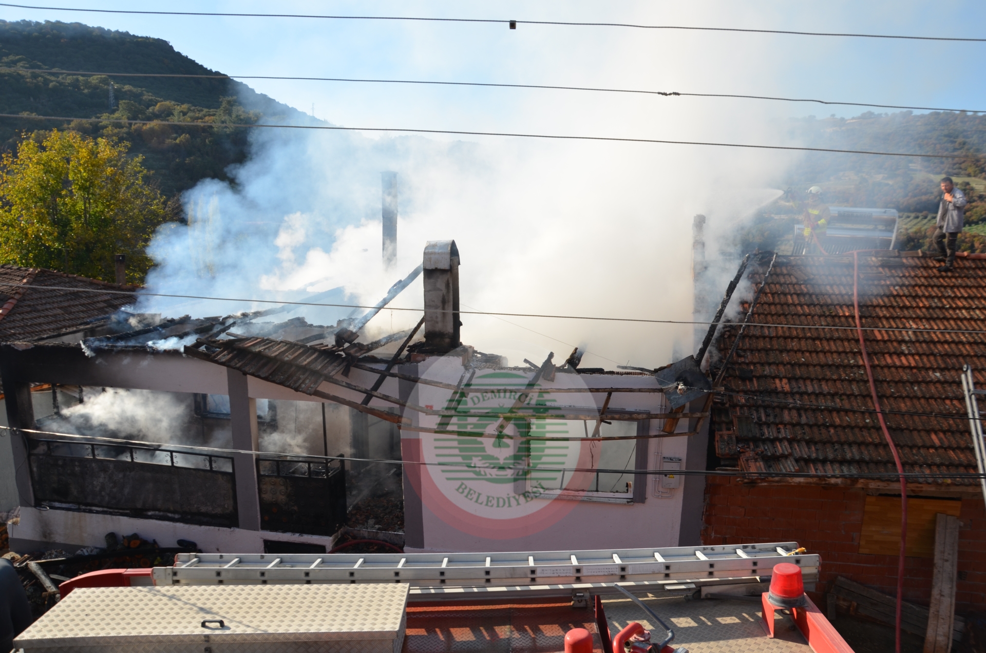 Demirci’de sabah saatlerinde meydana gelen yangında bir ev yanarak zarar gördü.