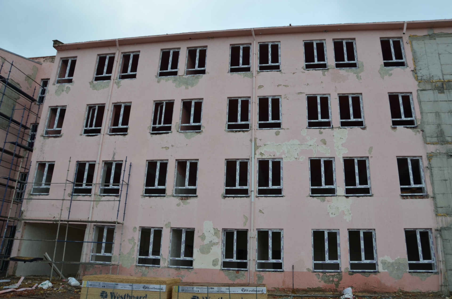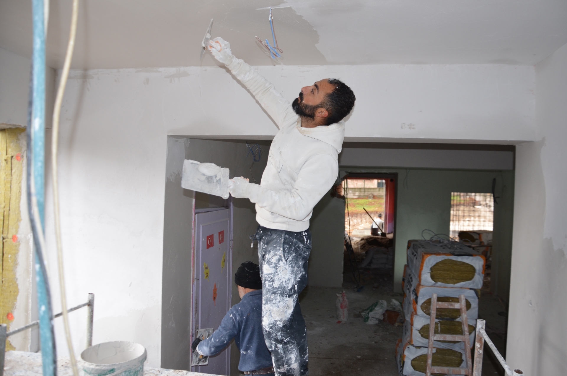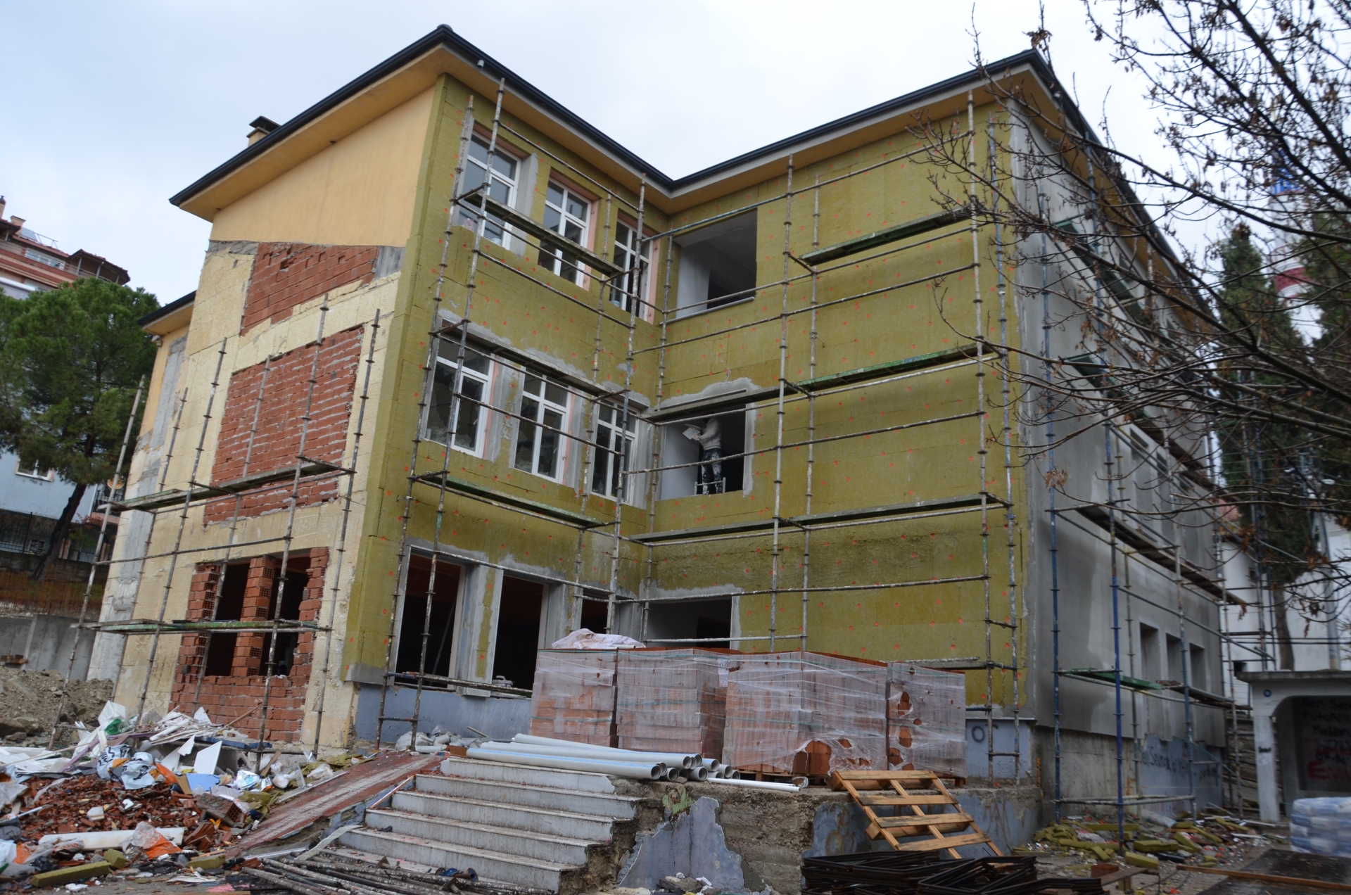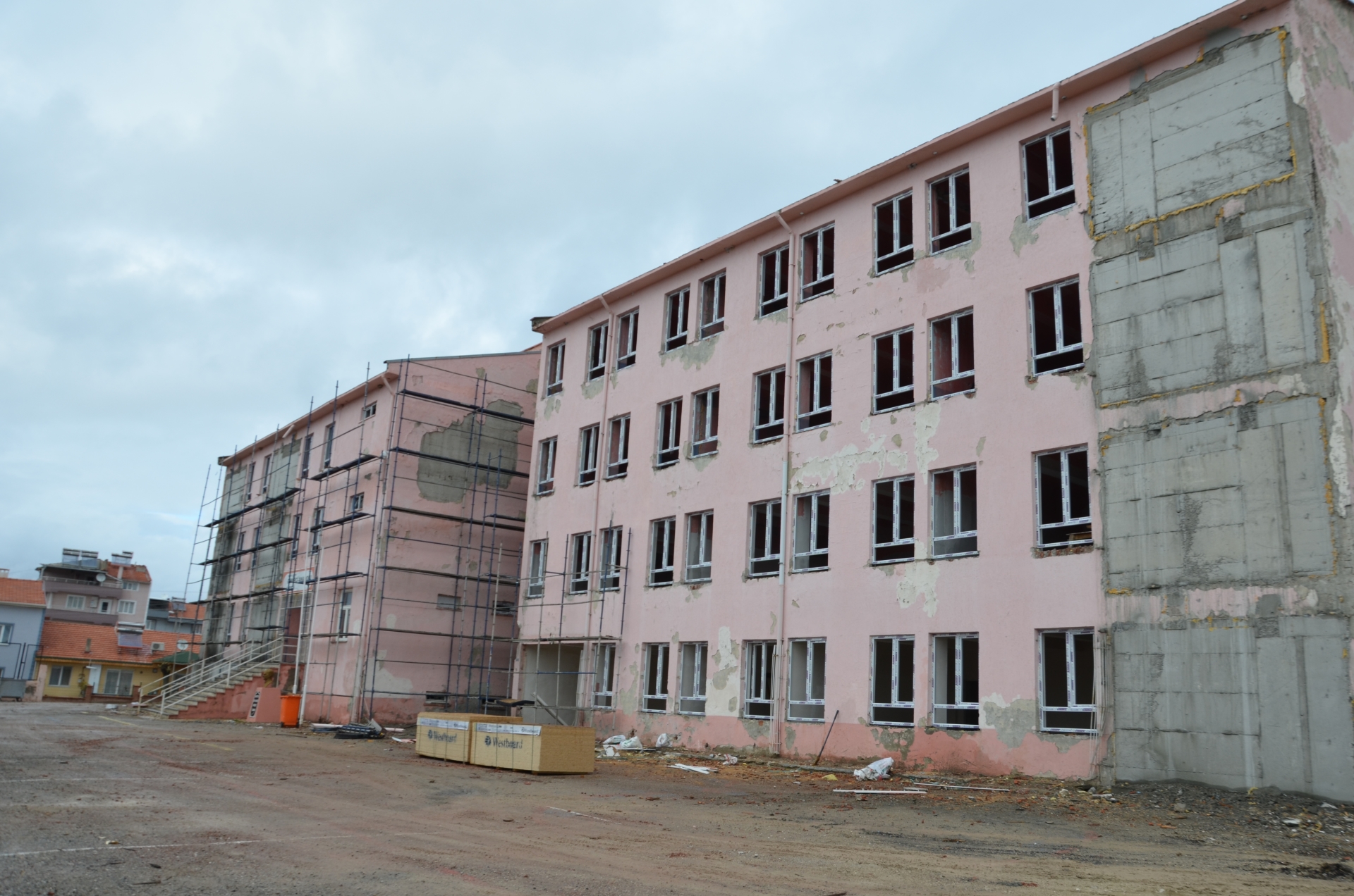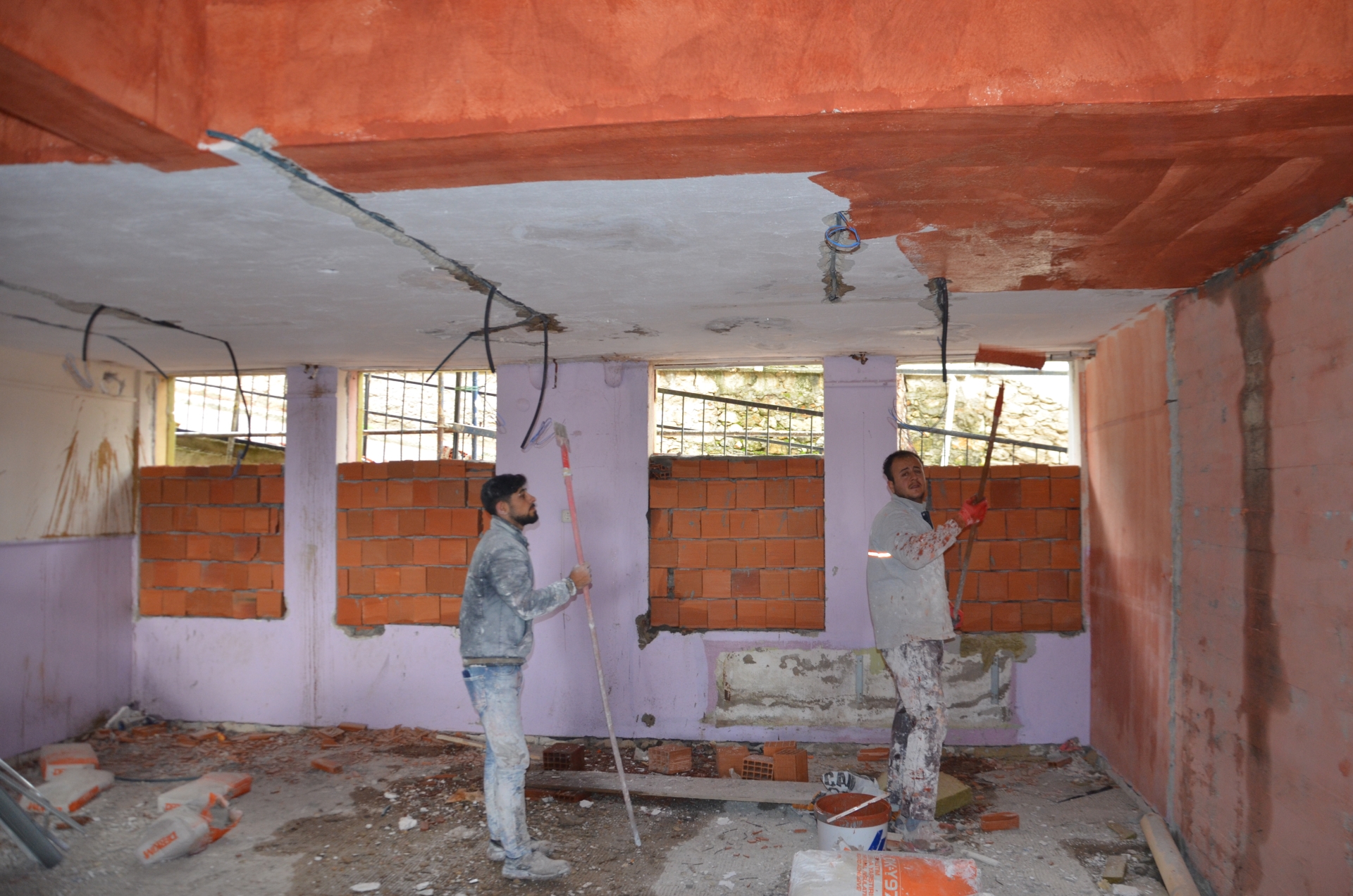 Çalışmalar kapsamında binanın sınıf zeminleri, duvarları ve kolonları güçlendirilirken kapı, pencere, lavabo ve sınıf zeminleri de yenilenecek.