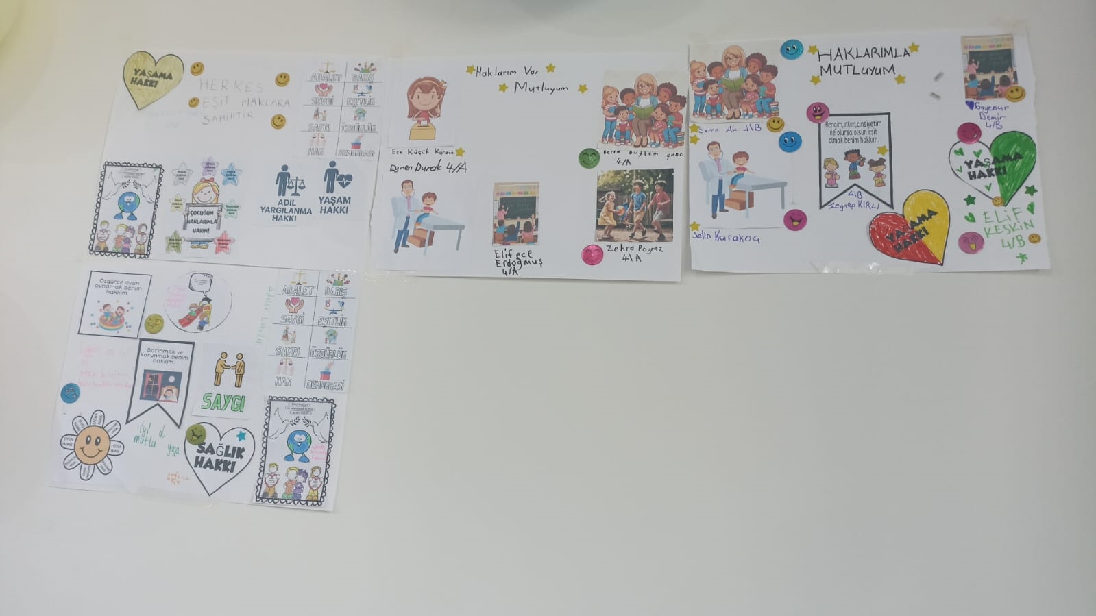 Öğrenciler, insan haklarını yansıtan çeşitli materyaller tasarlayarak hem öğrendiklerini pekiştirdi hem de yaratıcılıklarını ortaya koydu.