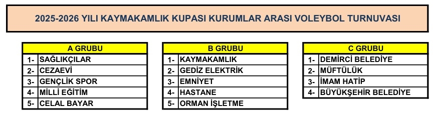 13 gün sürecek olan Kaymakamlık Kupası Voleybol Turnuvası’nın, 14 Ocak 2026 tarihinde oynanacak final müsabakasıyla sona ermesi planlanıyor.