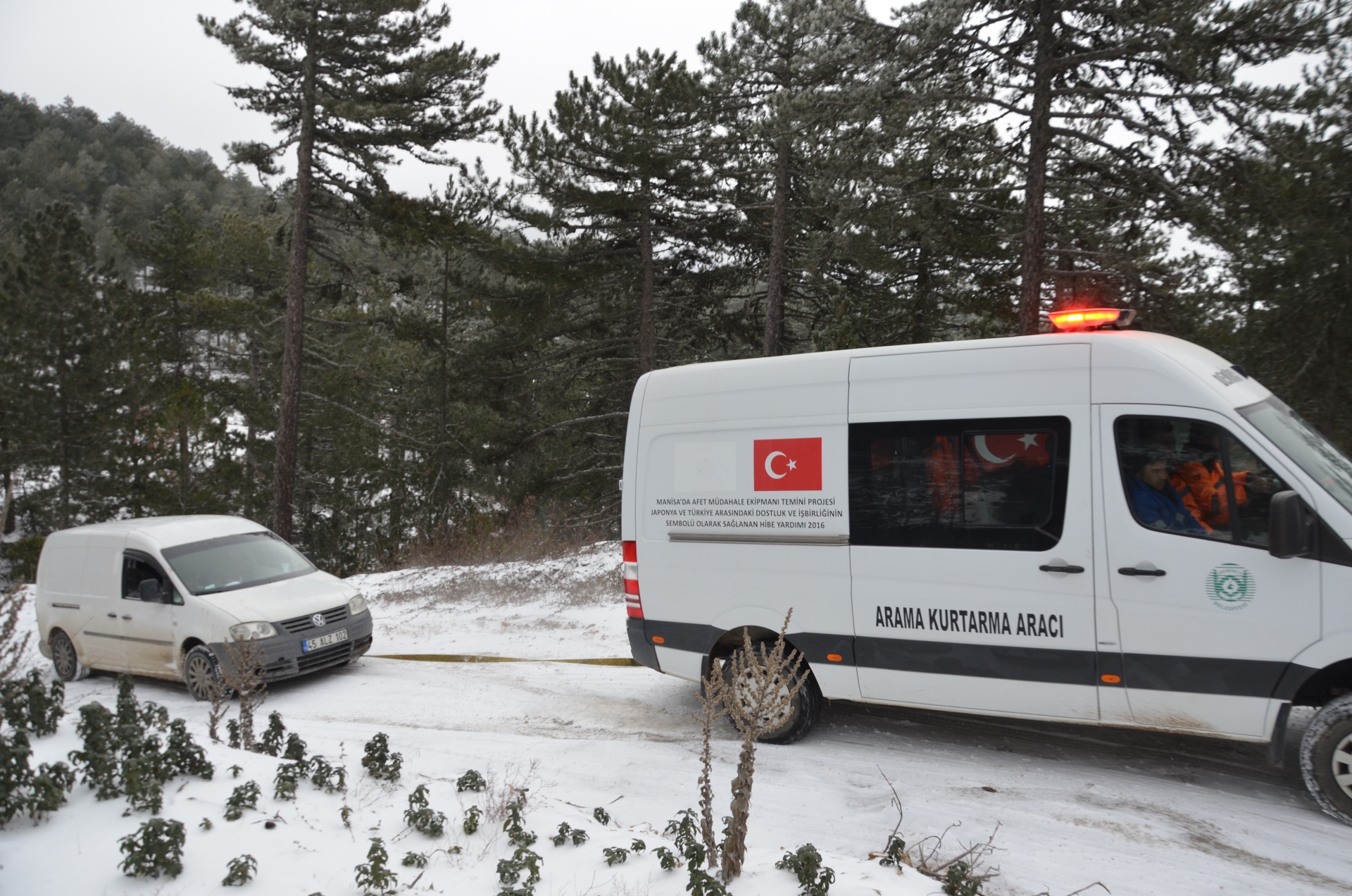 İhbar üzerine harekete geçen 5 kişilik Demirci Belediyesi Arama Kurtarma Timi, 45 kilometre mesafede zorlu arazi ve olumsuz hava koşullarına rağmen bölgeye ulaştı.