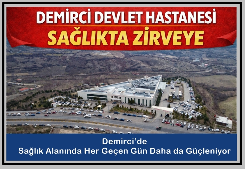 Hasta memnuniyetini esas alan hizmet anlayışıyla çalışmalarını sürdüren Demirci Devlet Hastanesi, güçlü hekim kadrosu, fedakâr sağlık çalışanları ve gelişen tıbbi donanımıyla bölge halkına daha kaliteli sağlık hizmeti sunmaya devam ediyor.