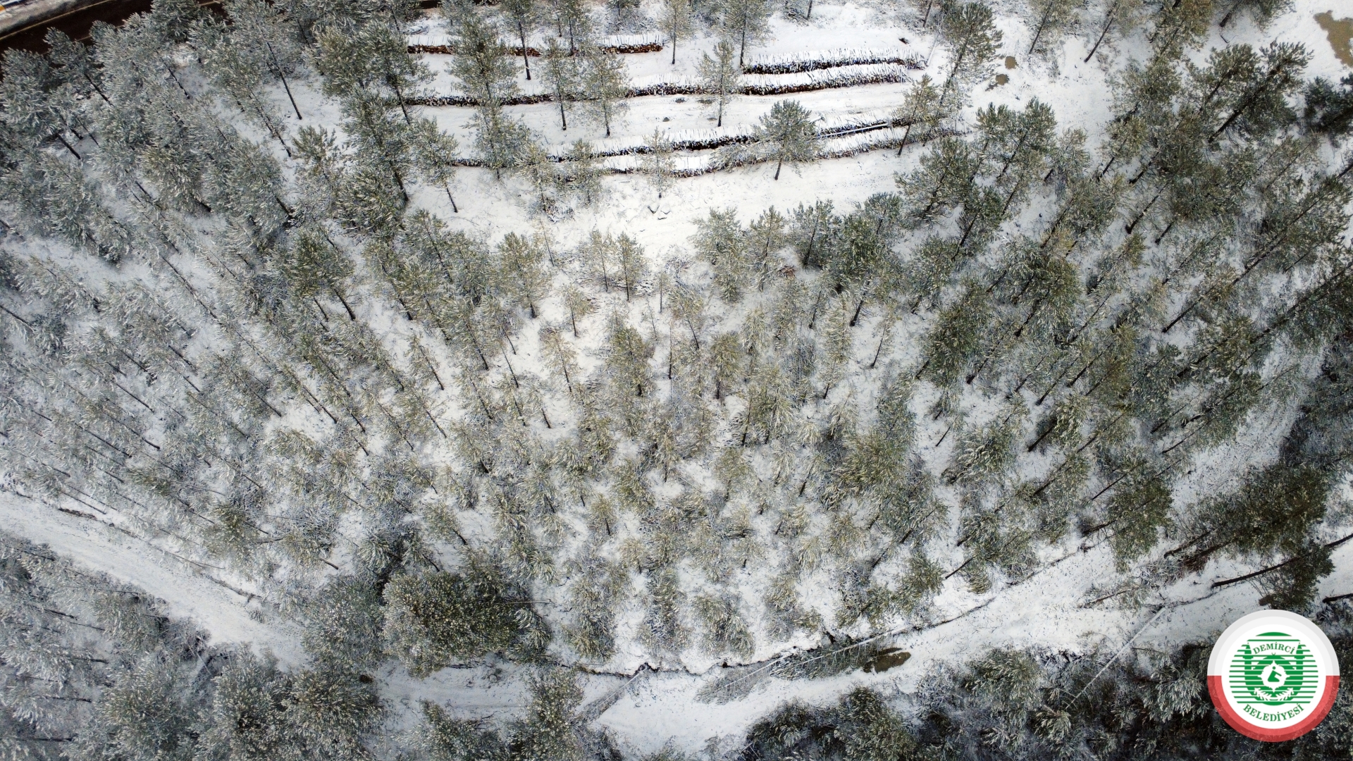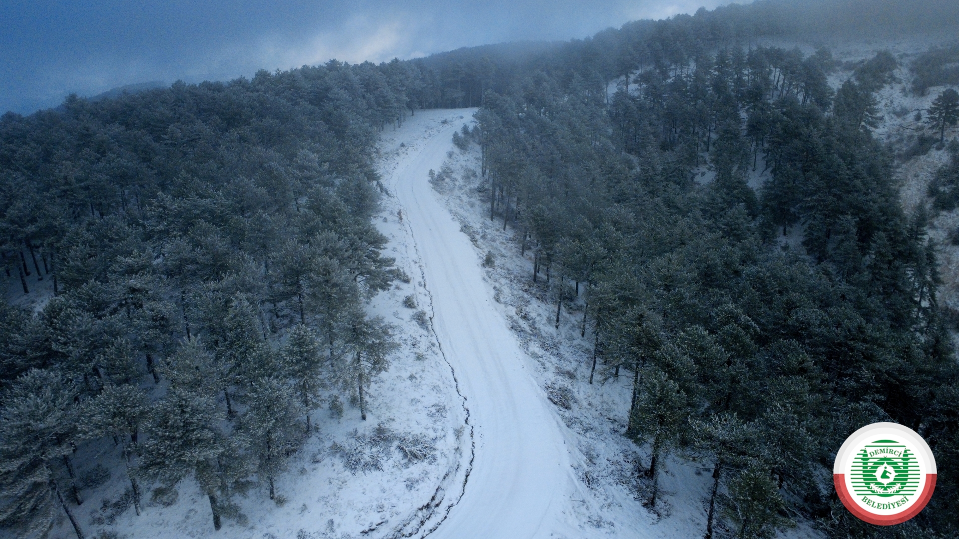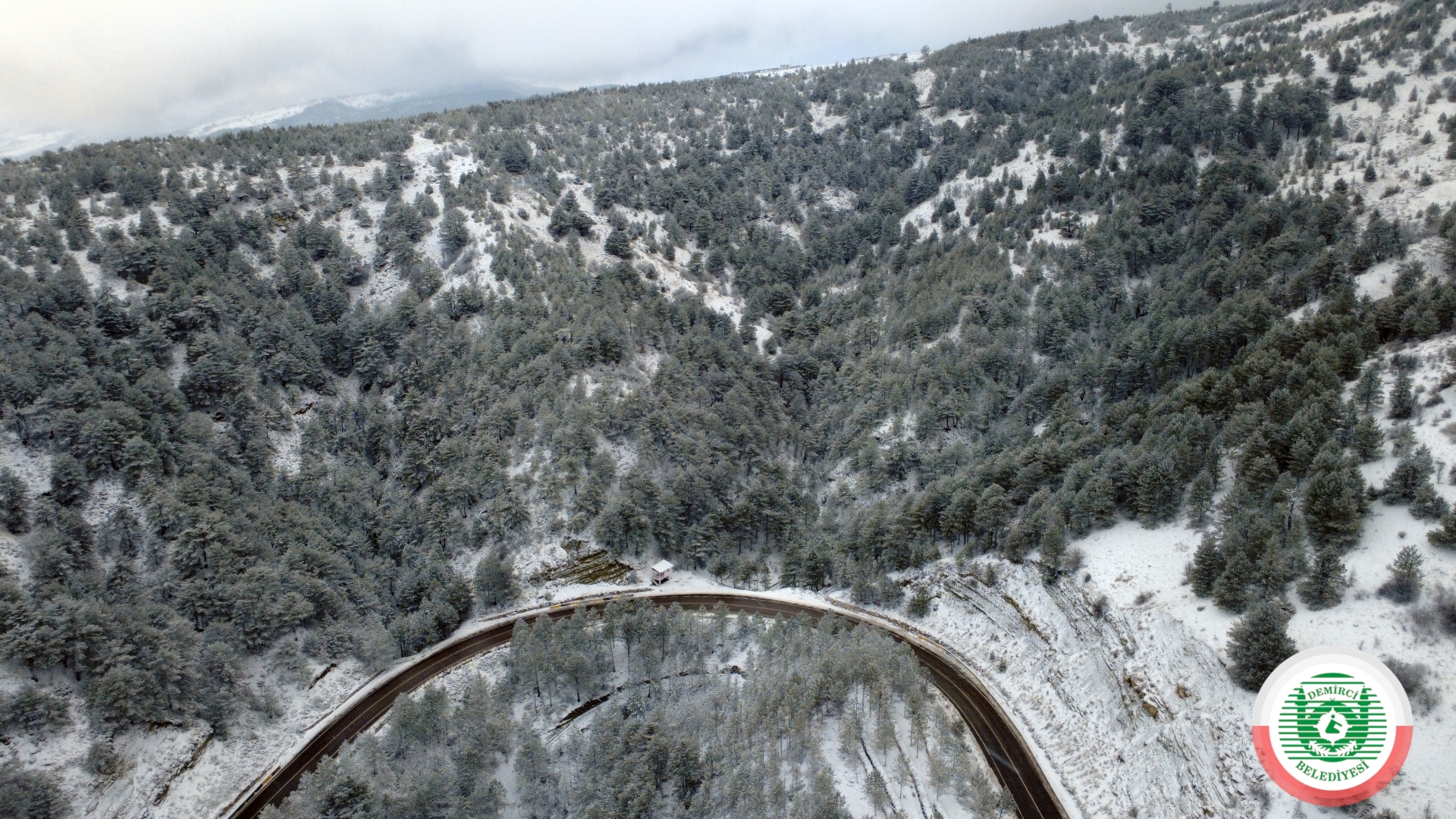 Kar yağışının ardından havadan görüntülenen Demirci Dağı ve çevresi, doğayla iç içe eşsiz manzaralara sahne oldu.