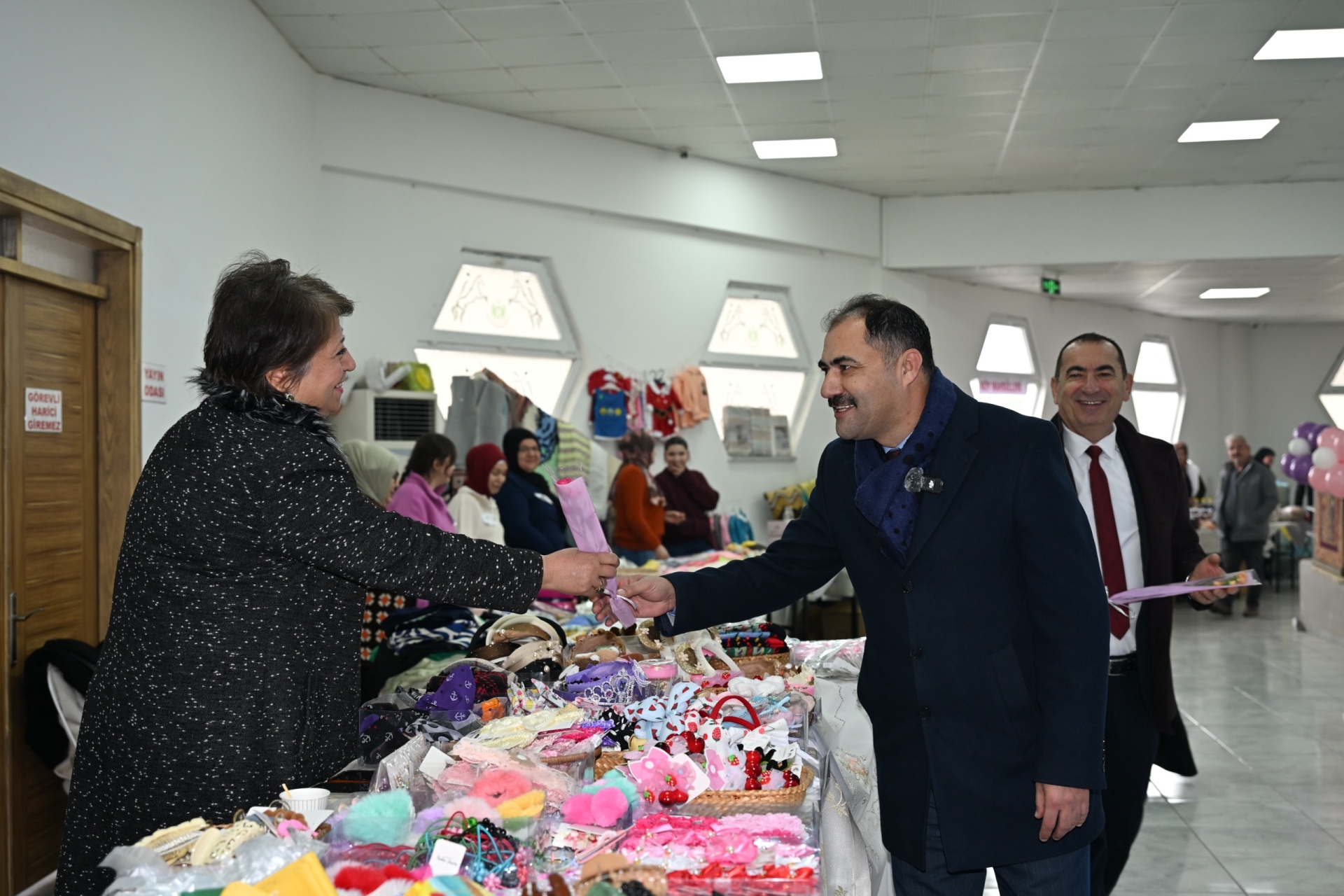 Başkanımız Erkan Kara, kermeste gönüllü olarak görev alan kadınlara karanfil ve çiçek takdim ederek teşekkür etti.