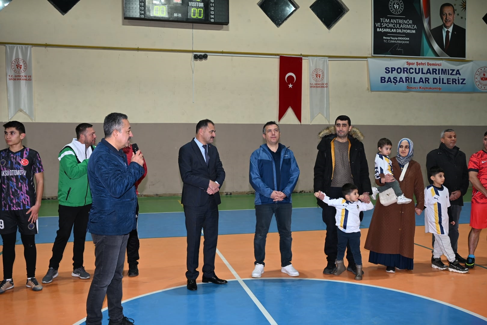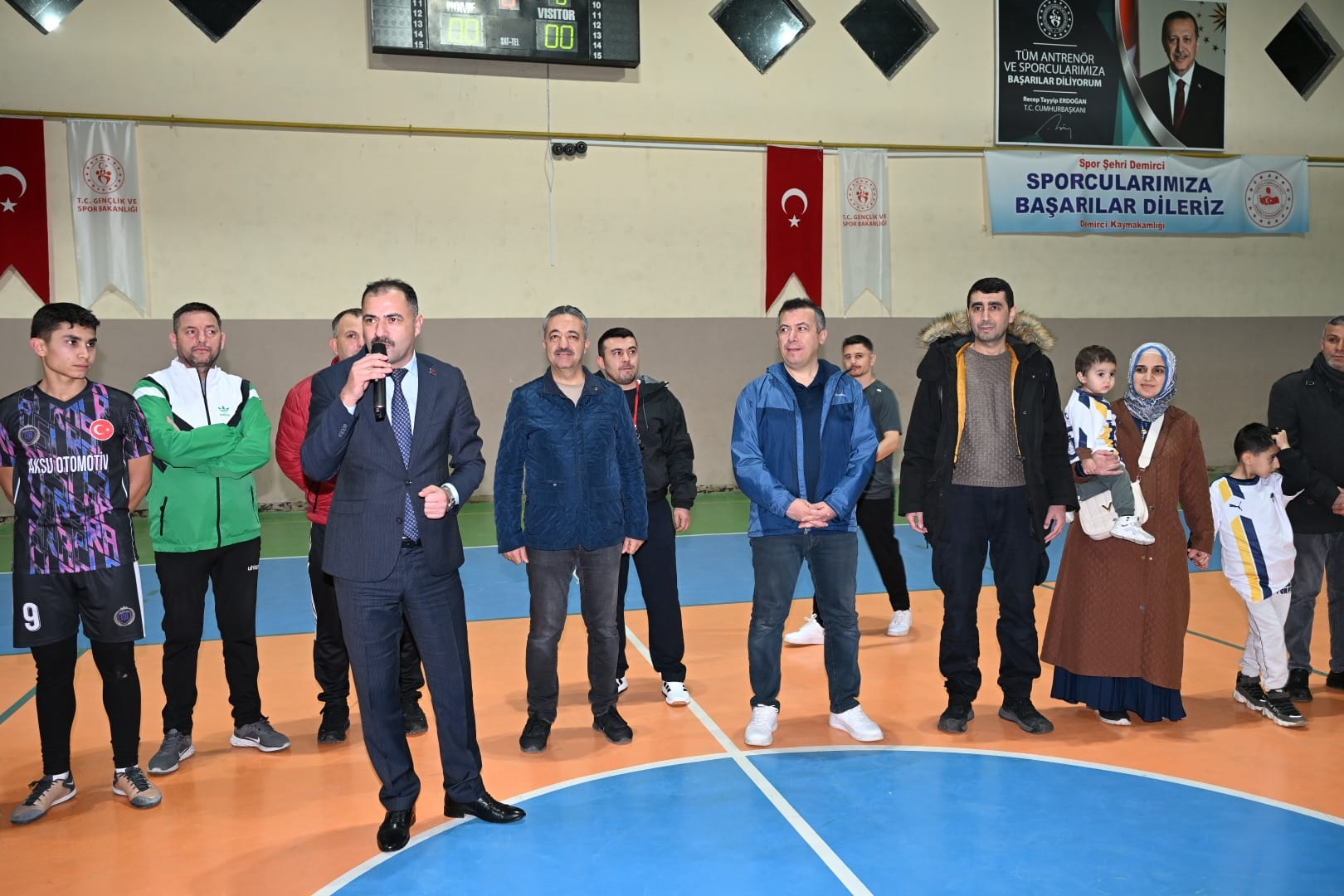 Kapalı Spor Salonu’ndaki açılış seremonisine Demirci Kaymakamımız Fatih Bayram, Belediye Başkanımız Erkan Kara, Gençlik ve Spor İlçe Müdürü Bilal Yılmaz, Rahmi Kerem Keskin ve ailesi ile çok sayıda vatandaş katıldı.