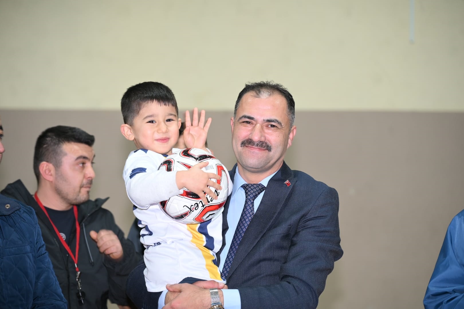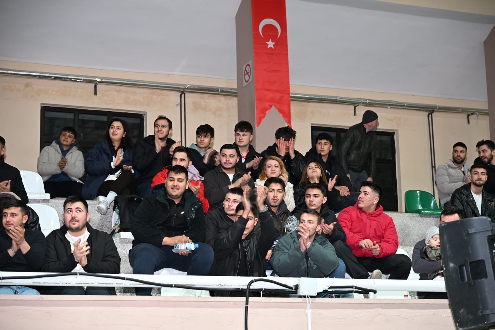 Yoğun tezahüratlar eşliğinde salona giren minik Rahmi Kerem, Başkanımız Erkan Kara ile birlikte tribünleri selamladı.