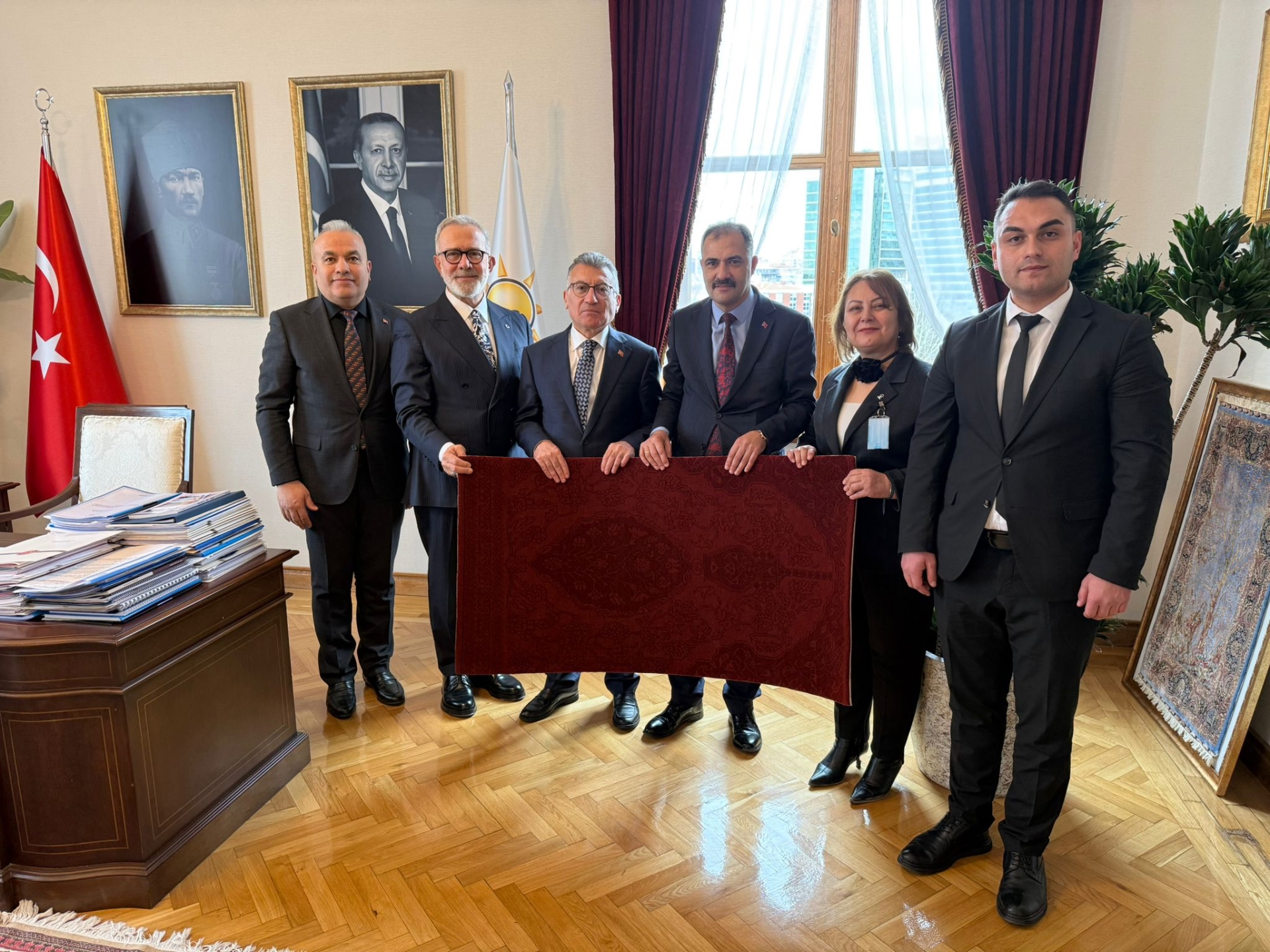 Belediye Başkanımız Erkan Kara, AK Parti Grup Toplantısı öncesinde Cumhurbaşkanı Recep Tayyip Erdoğan’a Selimiye Camii motifli özel dokuma Demirci halısını takdim ederek, ilçeye kazandırılan yatırımlara verdiği desteklerden dolayı teşekkür etti.