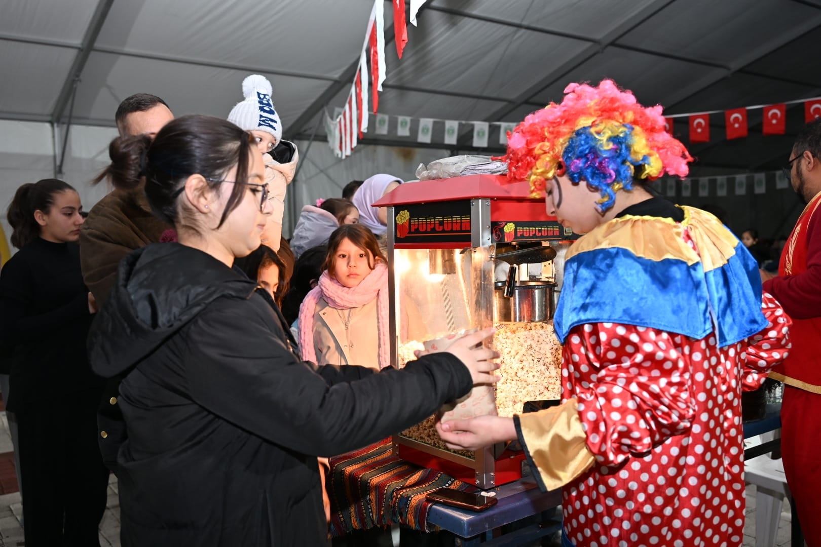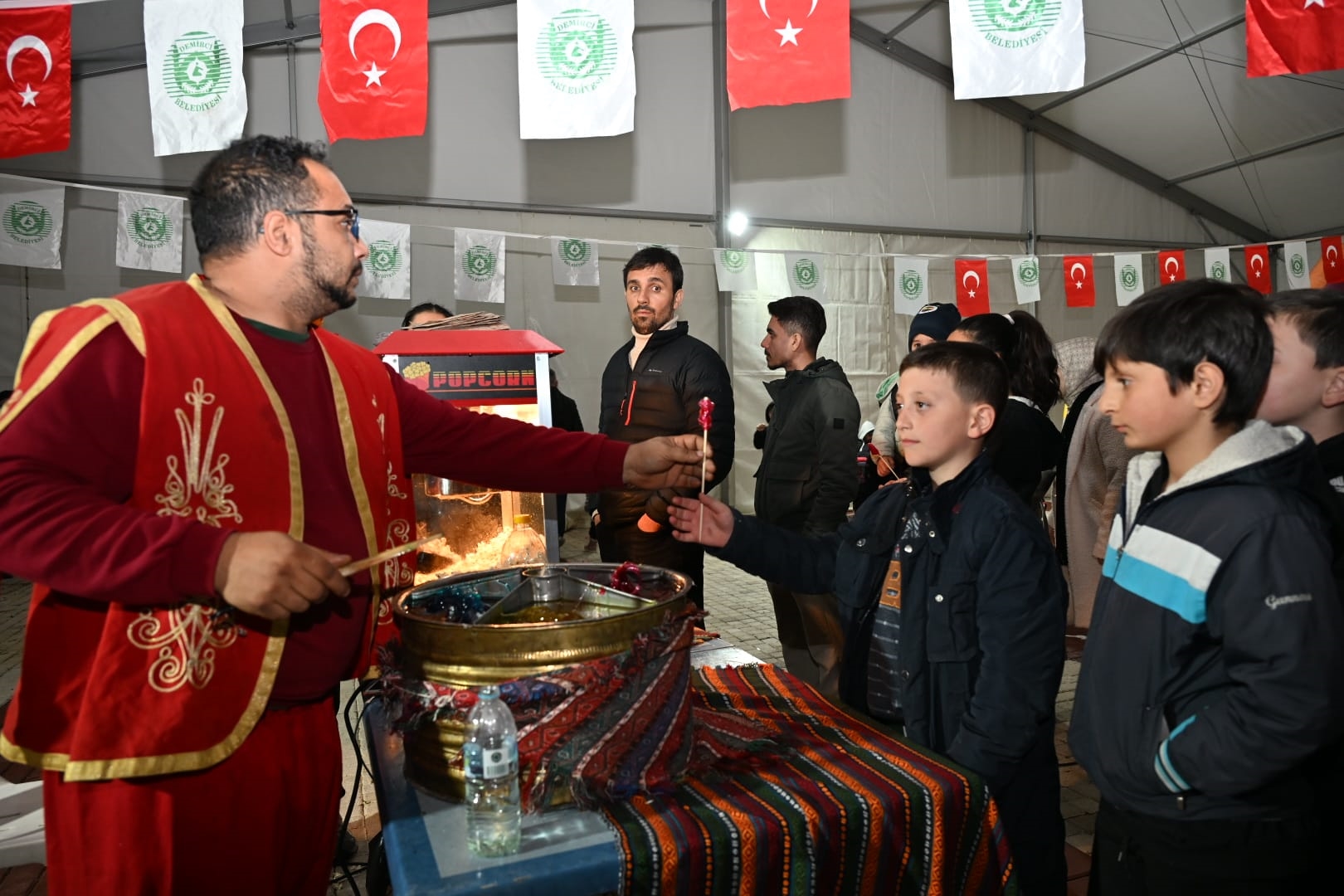 Etkinlik alanında çocuklarla yakından ilgilenen Başkanımız Erkan Kara, patlamış mısır ikram ederek onlarla sohbet etti.