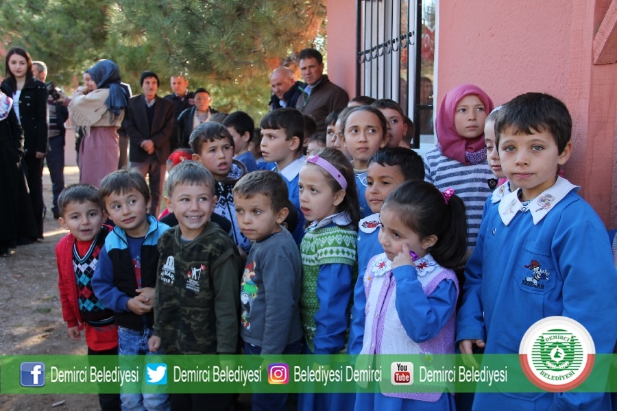 Demirci Kaymakamı Mutlu Akyol, Belediye Başkanı Selami Selçuk ve öğrenciler tarafından kırtasiye ve giyim malzemeleri öğrencilere dağıtıldı.