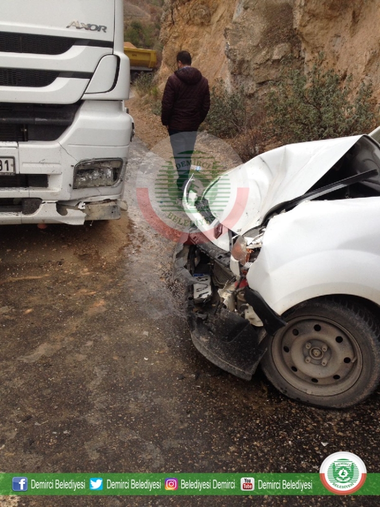 Edinilen bilgilere göre 43 ZD 474 plakalı Mustafa Erdoğan yönetimindeki otomobil karşı yönden gelen 07 HLF 91 plakalı hafriyat kamyonu ile çapıştı. Kazada otomobil sürücüsü Mustafa Erdoğan ve araçta bulunan eşi Yıldız Erdoğan yaralandı.