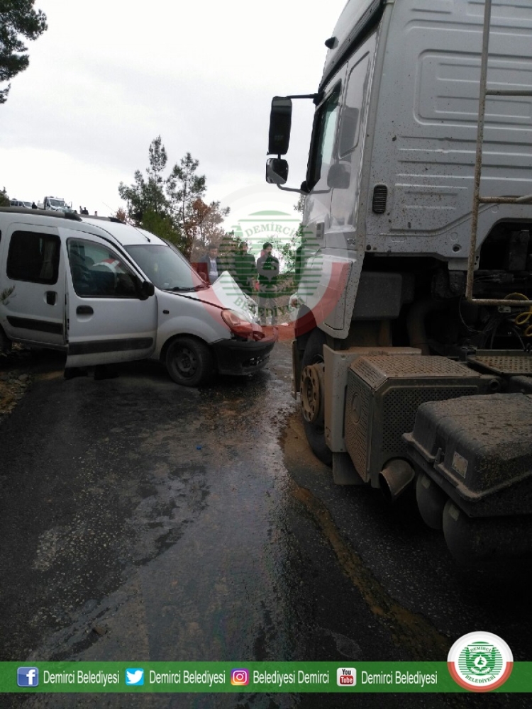 Demirci güne kazalarla uyanırken, sabah meydana gelen 2 kazanın ardından meydana gelen 3'üncü kazada da 2 kişi yaralandı.