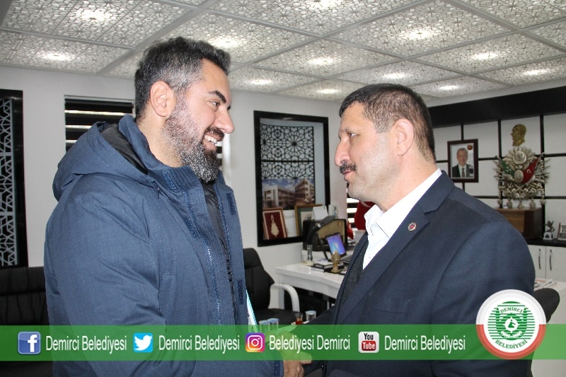 Demirci'ye program çekimi için gelen sanatçı Turgay Başyayla, Belediye Başkanı Selami Selçuk'u makamında ziyaret etti.